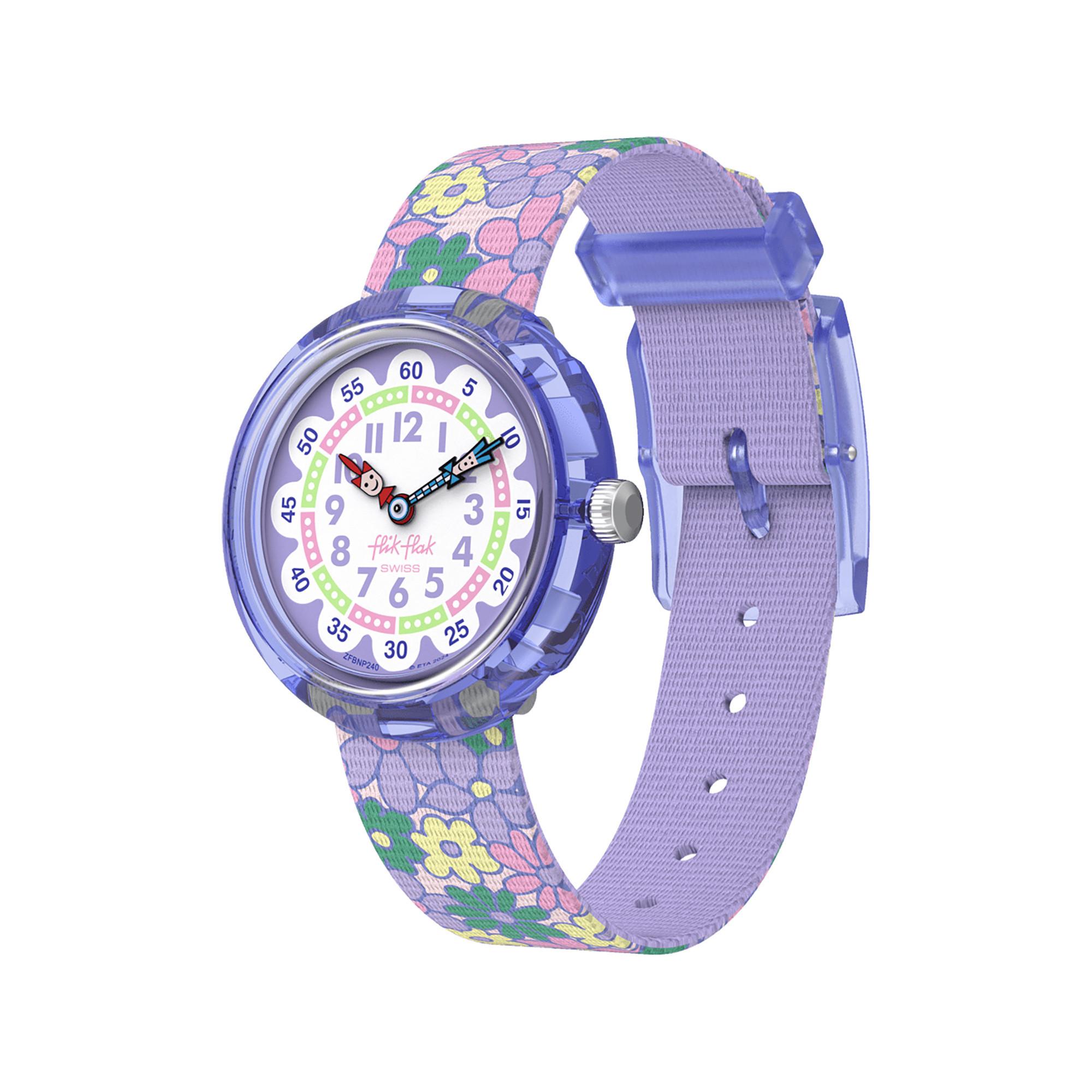 Die Lernuhr für Kinder FLOWER FIELDS ist inspiriert von den Wundern der Natur mit einem mit Blumen verzierten Armband und einem blumenförmigen Zifferblatt mit Minutenzahlen auf jedem Blütenblatt. Sie ist ideal für Kinder, die gerade die Uhr lesen lernen, und ein wunderbares Geschenk!
