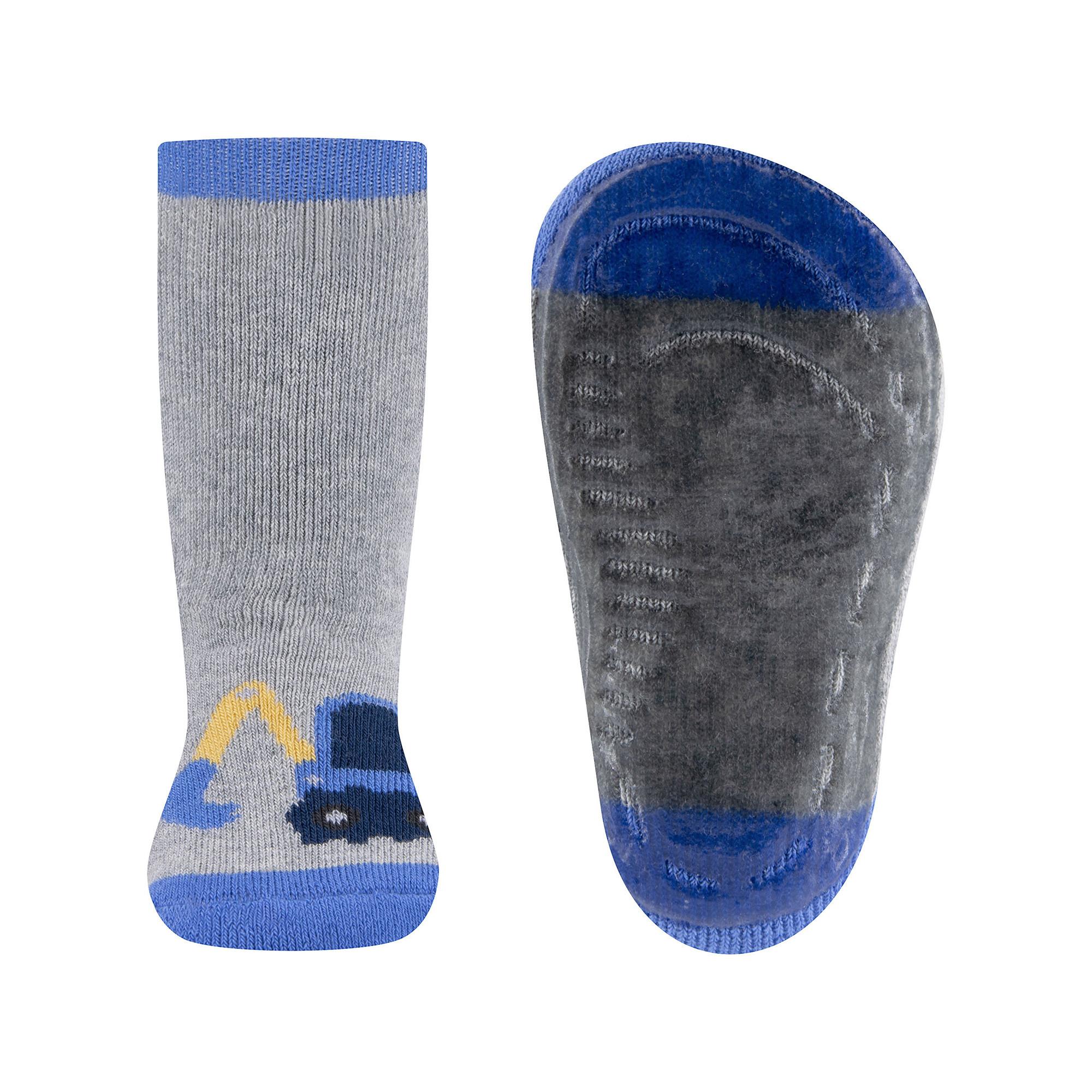 Diese Stoppersocken mit niedlichem Baggermotiv eignen sich ideal als Hausschuhersatz.