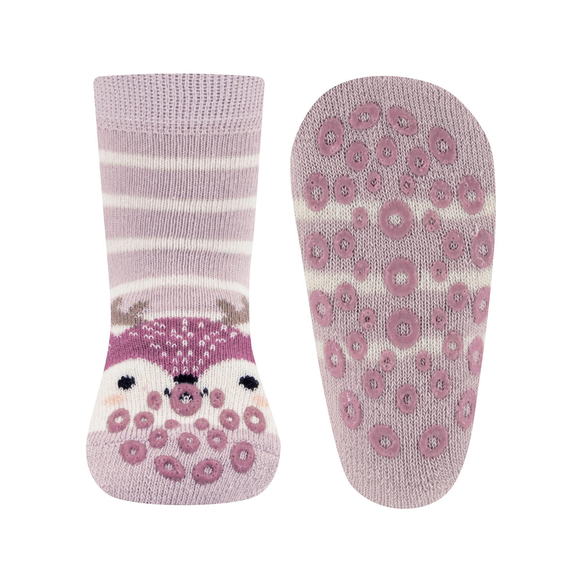 Die Krabbelsocken mit niedlichem Rehmotiv und Ringelmuster sind ideal als Hausschuh-Ersatz für aktive Babys. Die rutschfeste ABS-Beschichtung an Sohle und Zehen sorgt für sicheren Halt auf glatten Böden. Das kuschelige Innenplüsch hält die Füsse angenehm warm und bietet hohen Komfort.
