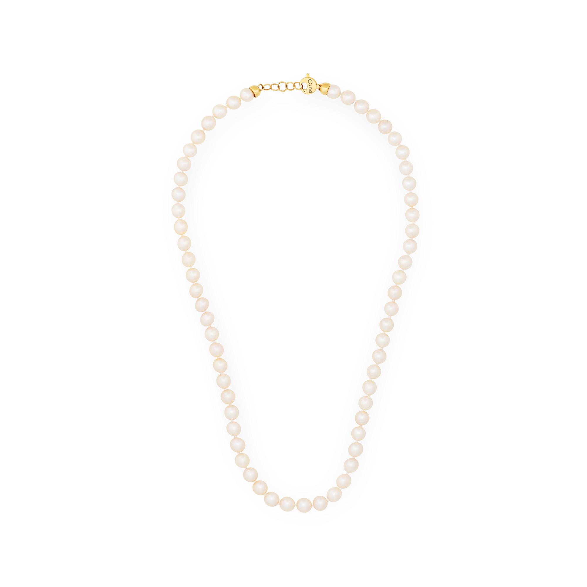 Diese Halskette von Puro ist ein klassisches Schmuckstück aus 18-karätigem Gold und Akoya-Perlen. Die edle Kette lässt sich stilvoll per Karabinerverschluss schliessen.