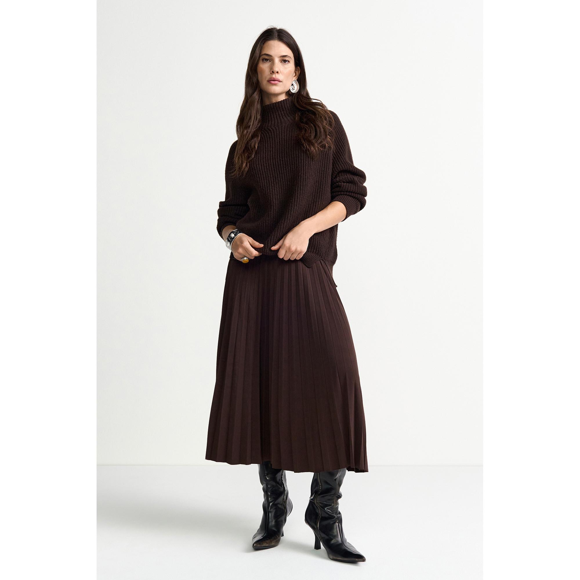 Der Plisseerock von Rich & Royal zeigt sich in eleganter Faltenoptik und fliessender Silhouette. Der feine Stoff sorgt für angenehmen Schwung bei jedem Schritt. Er ist vielseitig kombinierbar – von casual bis chic.