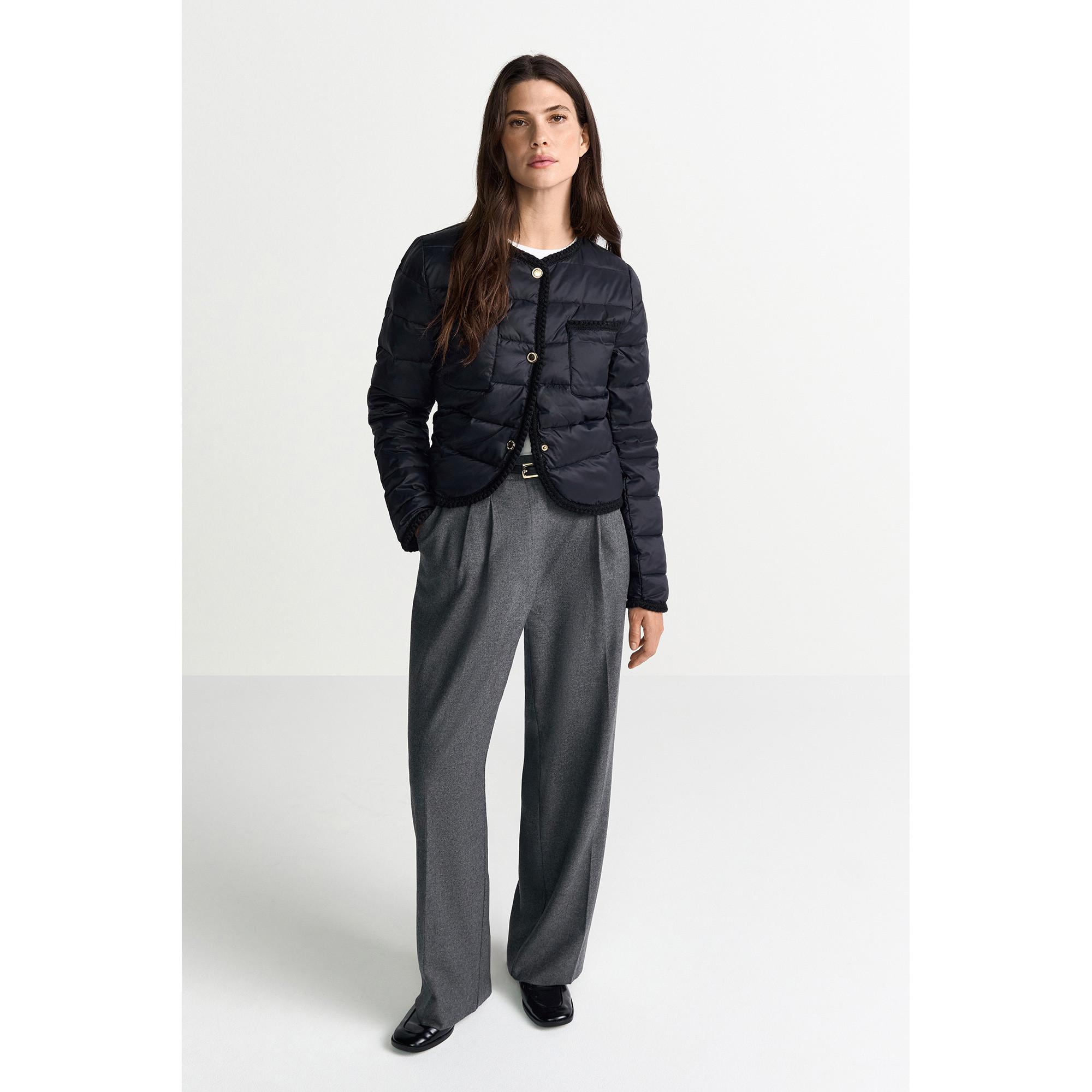 Die Jacke zeigt sich mit gesteppter Struktur und dekorativer Einfassung. Brusttaschen und eine dreiknöpfige Front verleihen dem Modell eine stilvolle Note mit urbanem Charakter.