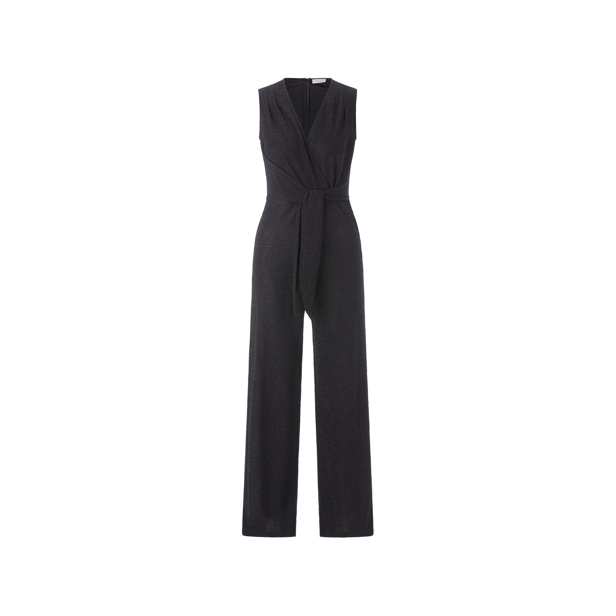 Dieser elegante ärmellose Jumpsuit verfügt über einen schmeichelhaften V-Ausschnitt und ein schickes Bindegürtel-Detail, das eine raffinierte Silhouette schafft. Die weiten Beine verleihen einen modernen Stil und machen ihn für verschiedene Anlässe geeignet.