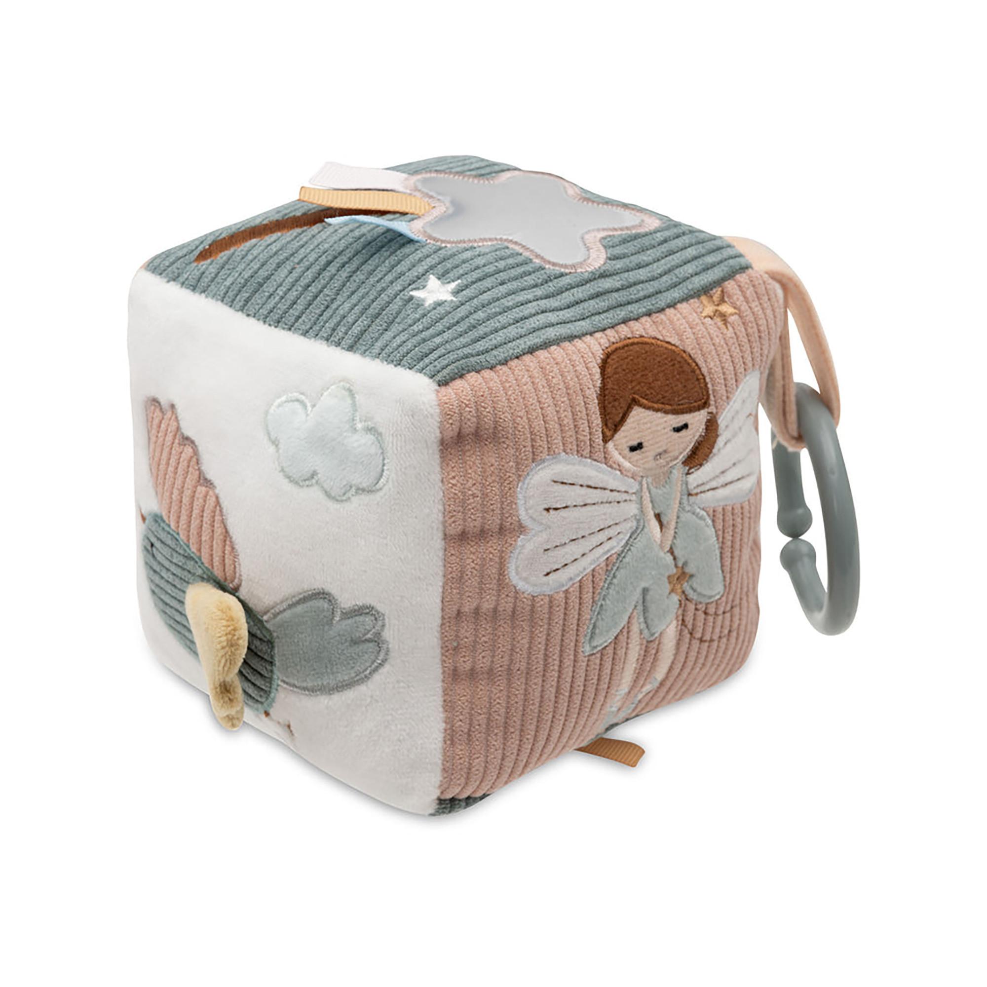 Der fröhliche Aktivitäten-Würfel im Lovely Birds-Thema begeistert mit farbenfrohen Aufdrucken, süssen Prints, lustigen Etiketten und liebevollen Stickereien. Entdecke fröhliche Vögel, flauschige Wolken, Blumen, einen Stern und die zauberhafte Fee Amy – perfekt, um die Sinne deines Kindes zu fördern und für stundenlangen Spielspass zu sorgen.