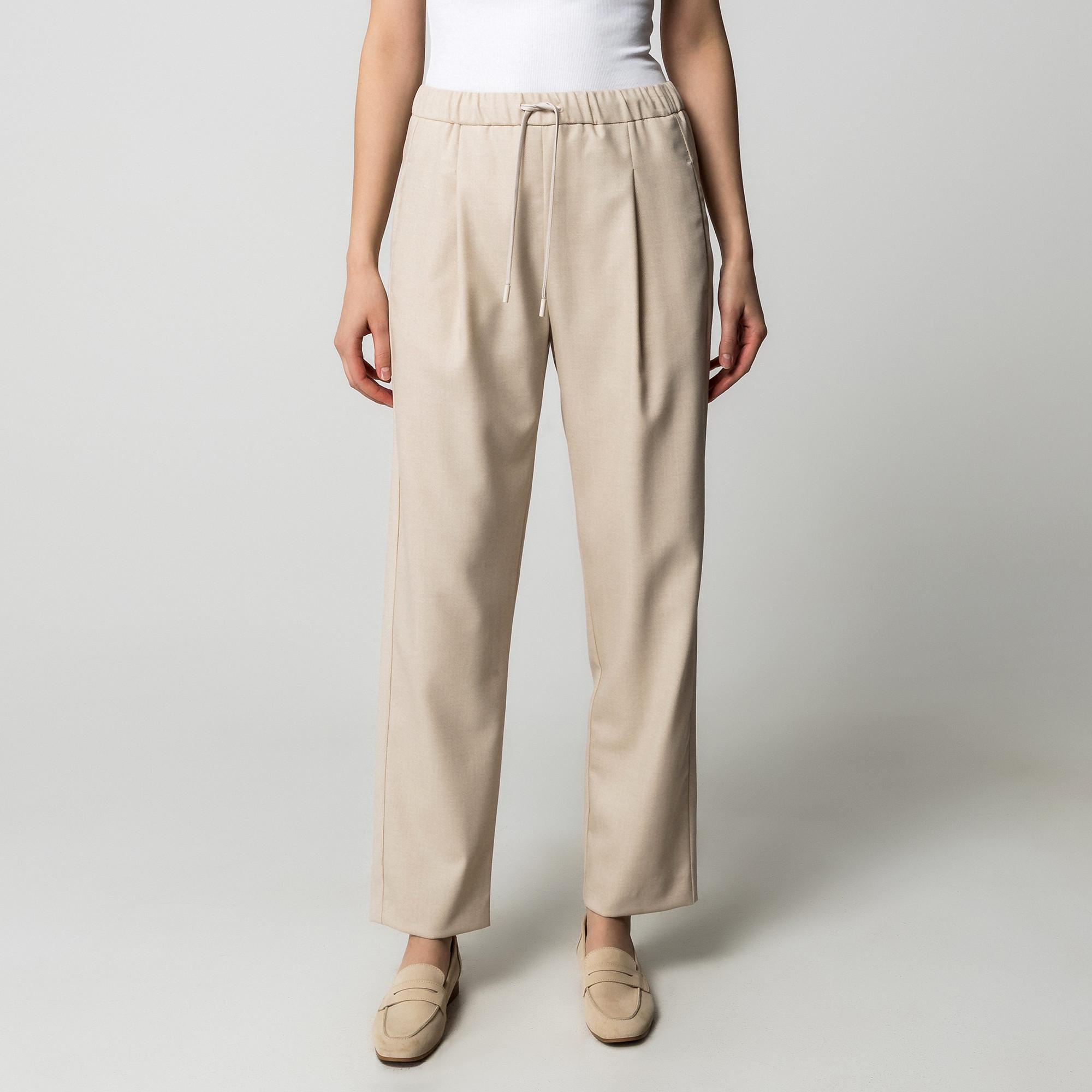 Diese Marella Nyssa Hose ist aus einem weich fliessenden Materialmix mit Schurwolle hergestellt, mit Standard-Passform und weitem Bein. Sie hat einen elastischen Bund mit Tunnelzug, seitliche Naht- und paspelierte Gesässtaschen.
