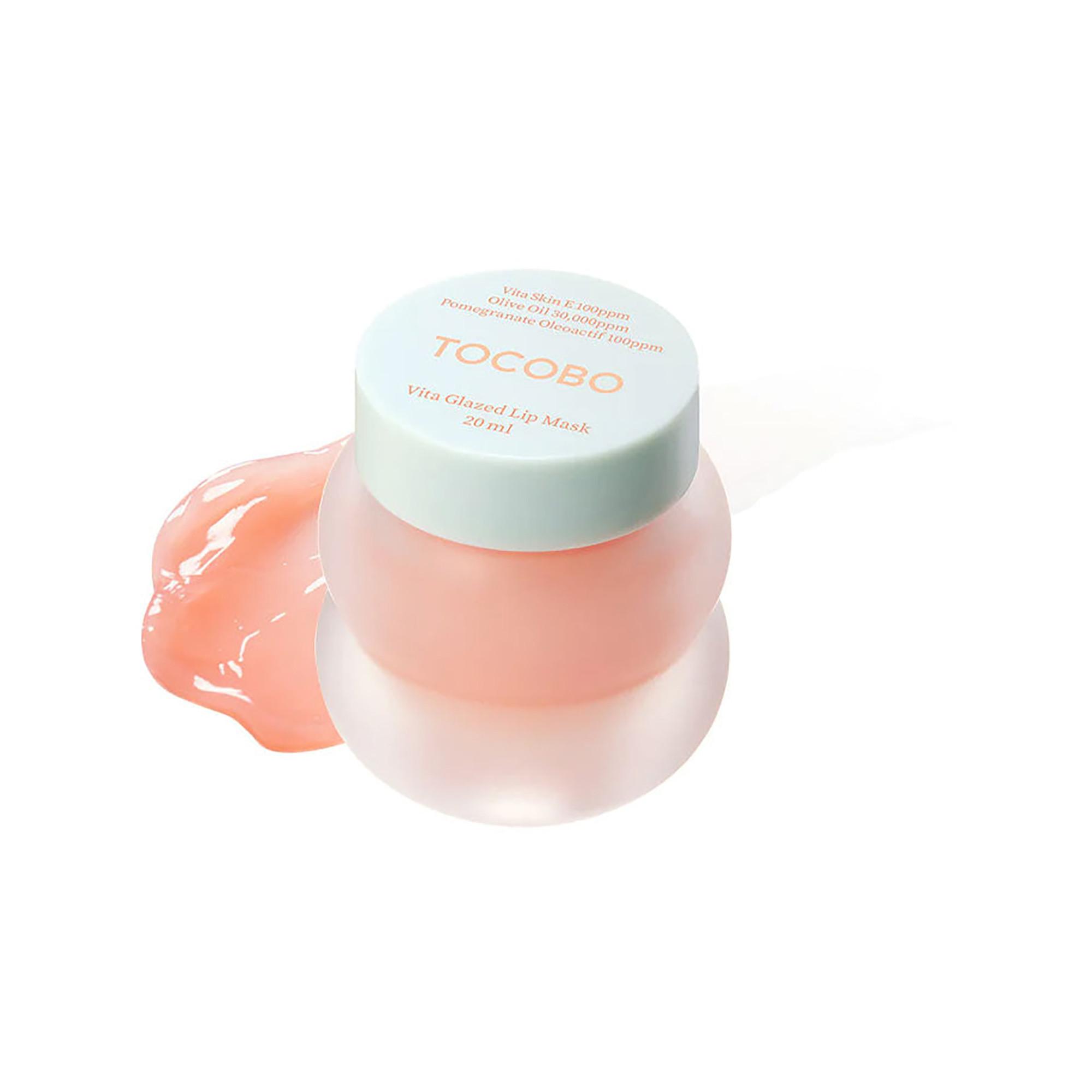 Die Tocobo Vita Glazed Lip Mask macht die Lippen mit ihrer feuchtigkeitsspendenden und peelenden Lippenpflegeformel über Nacht schön und feucht.