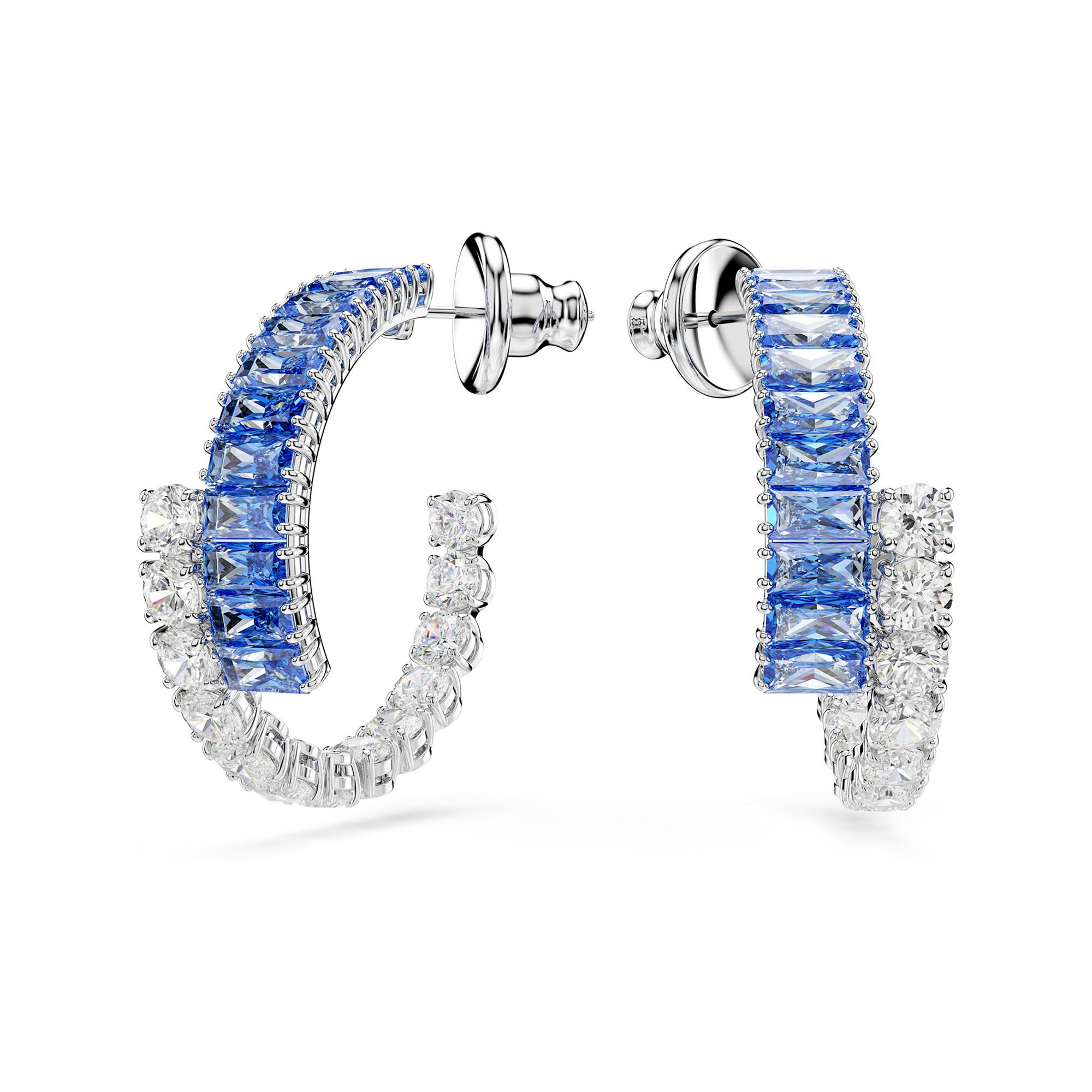 Setzen Sie mit dem leuchtenden Design dieser Matrix Ohrringe farbenfrohe Akzente. Jedes Schmuckstück besticht durch seinen eleganten Look und kombiniert klare und blaue Swarovski Zirconia in einem faszinierenden Mix aus Rund- und Baguette-Schliffen. In Kombination mit anderen Matrix Schmuckstücken verleihen diese Ohrringe jedem Outfit farbenfrohe Strahlkraft.