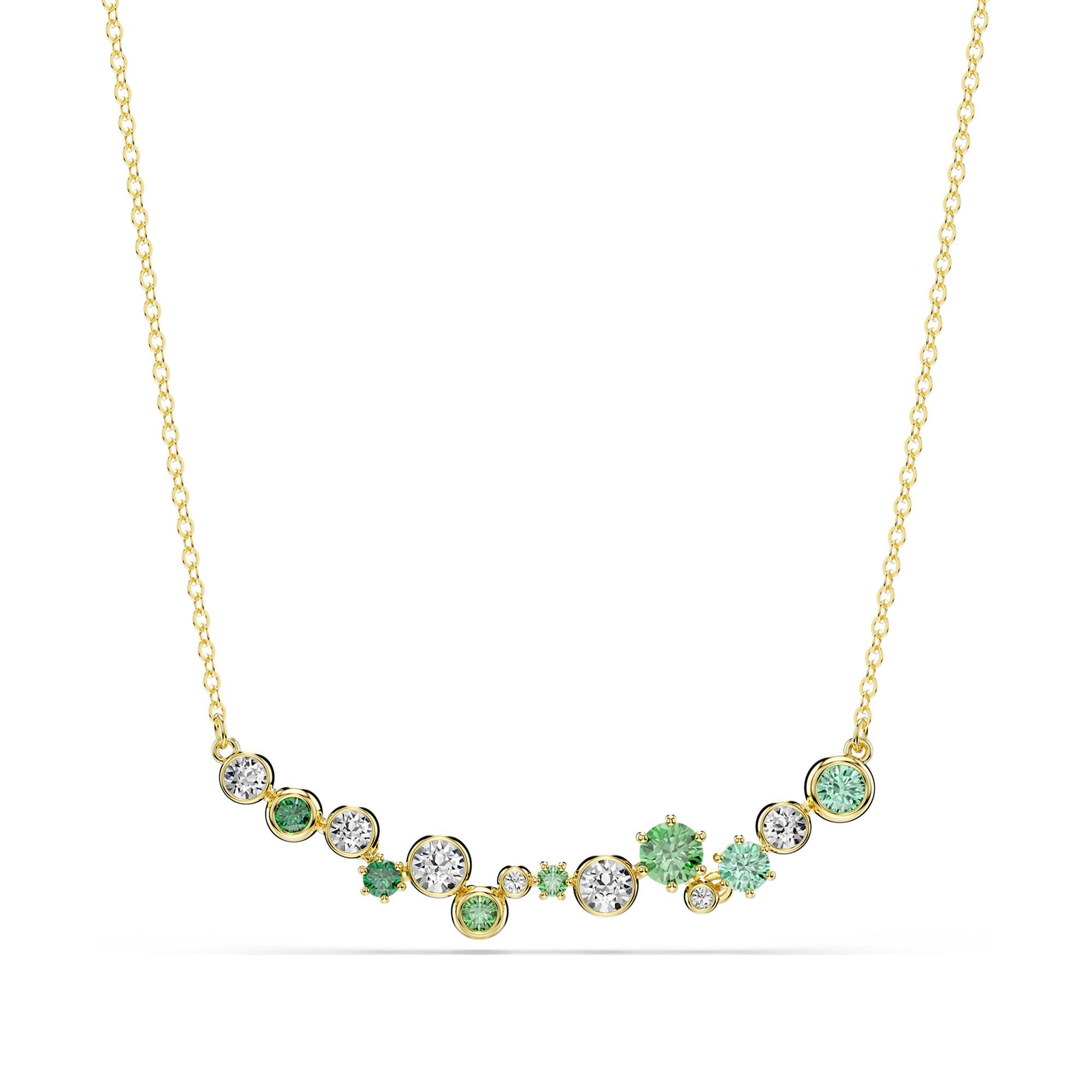 Diese Constella Halskette von Swarovski verzaubert mit einem funkelnden Sternenmotiv aus klaren Kristallen und grünen Swarovski Zirconia in Goldlegierungsschicht. Die zierliche Kette mit Kugelschiebeverschluss bringt kosmischen Glanz in Ihren Alltag und lässt sich perfekt mit den passenden Ohrringen kombinieren.