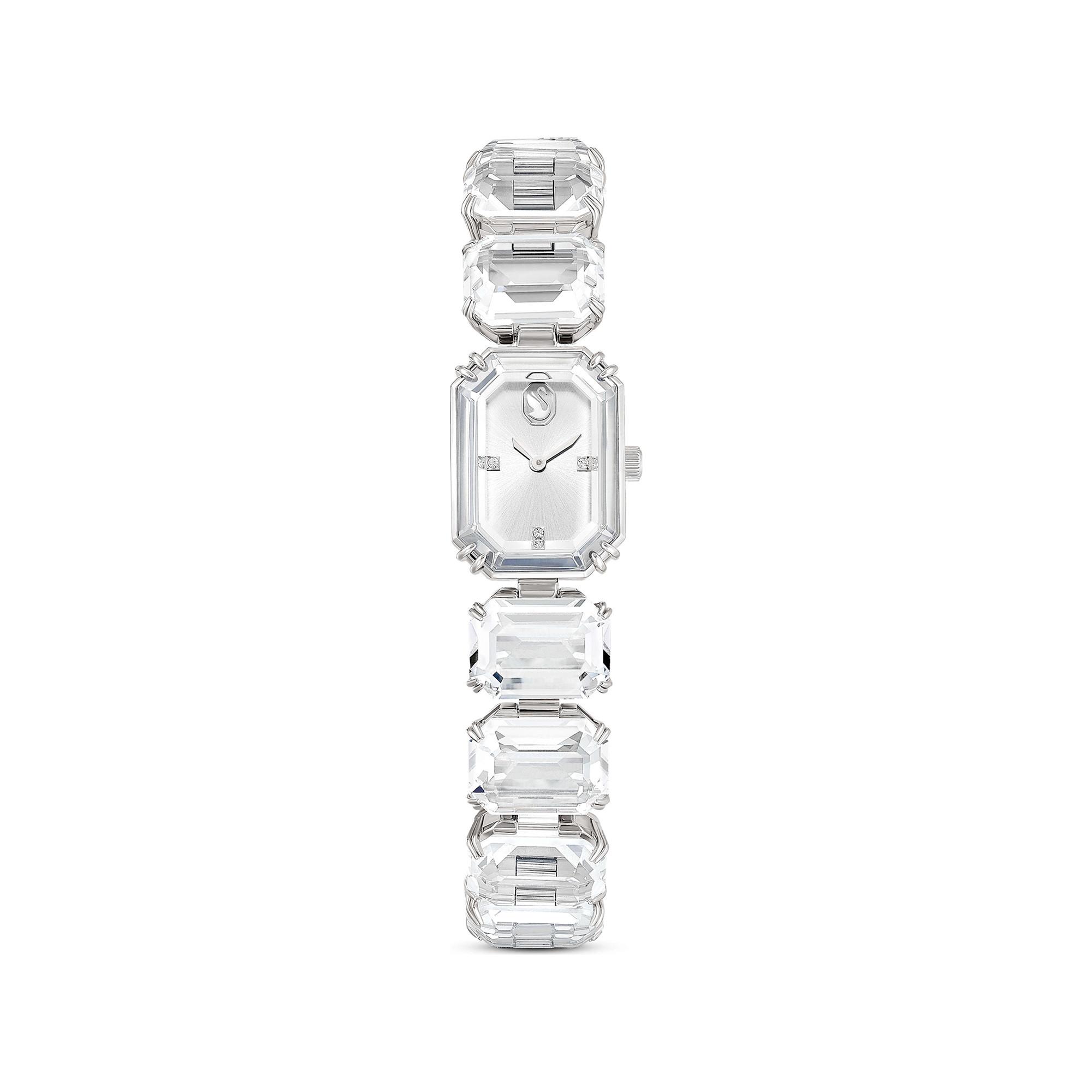 Inspiriert von der Millenia Familie wertet diese auffällige Armbanduhr Ihr Alltagsoutfit auf. Das Meisterwerk aus mehreren klaren Kristallen im Oktagon-Schliff zeichnet sich durch ein silberfarbenes Zifferblatt, eine Kristall-Lünette und ein Edelstahl-Finish aus. Die Uhr ist bis 50 m wasserdicht und sorgt allein oder im Layering-Style für einen eleganten Look.