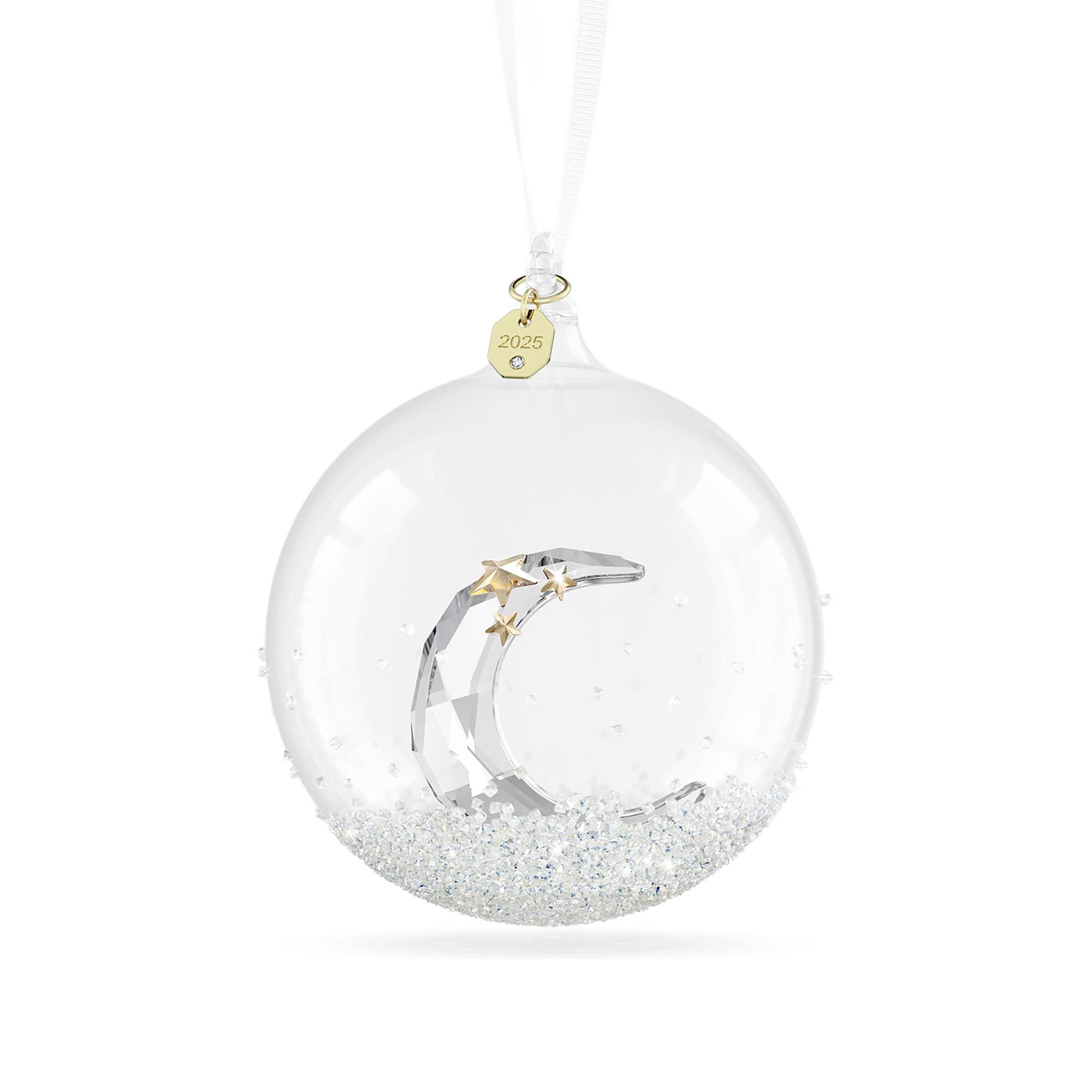 Diese funkelnde Swarovski Annual Edition Weihnachtskugel 2025 verzaubert durch ihre schimmernden Kristalle und die liebevoll gestaltete Mondsichel mit goldfarbenen Sternen. Die Glaskugel hängt an einem weissen Ripsband und wird durch ein Metalletikett in Champagne-Gold mit Gravur „2025“ stilvoll abgerundet – das perfekte Geschenk für besondere Anlässe.