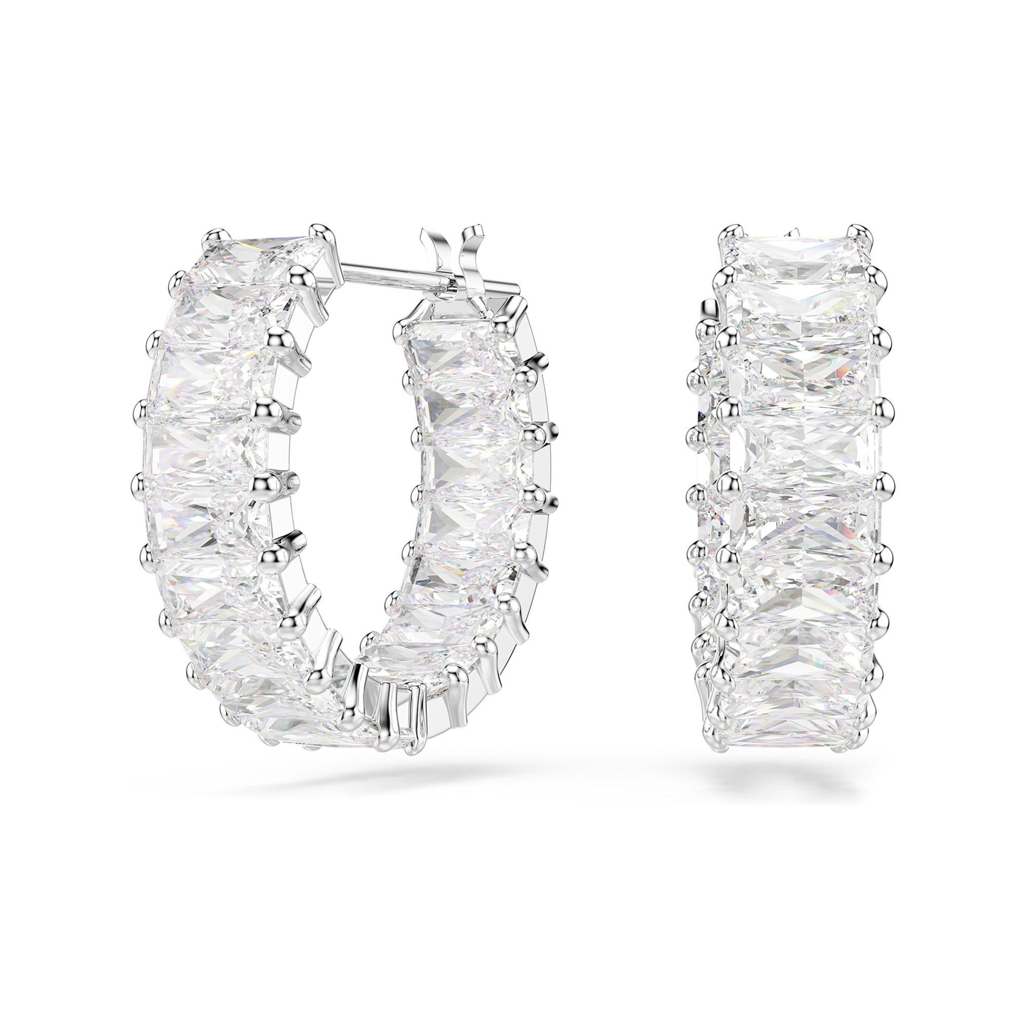 Diese rhodinierten Matrix Minikreolen von Swarovski glänzen mit präzise gefassten Swarovski Zirconia im Baguette-Schliff für einen stilvollen, klaren Look. Sie sind die perfekte Ergänzung zu einer Matrix Halskette und bringen schlichte Eleganz in jedes Outfit.
