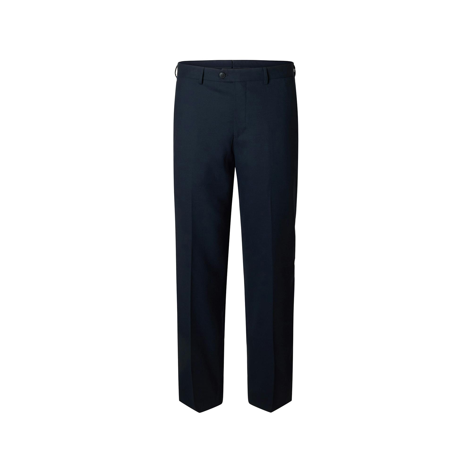 Die Anzughose überzeugt mit schlanker Passform und klassischem Schnitt. Der Knopf- und Reissverschluss sowie die Gesässtaschen sorgen für ein gepflegtes Erscheinungsbild. Ein leichtes Futter bis zum Knie bietet zusätzlichen Komfort – ideal für formelle Anlässe.