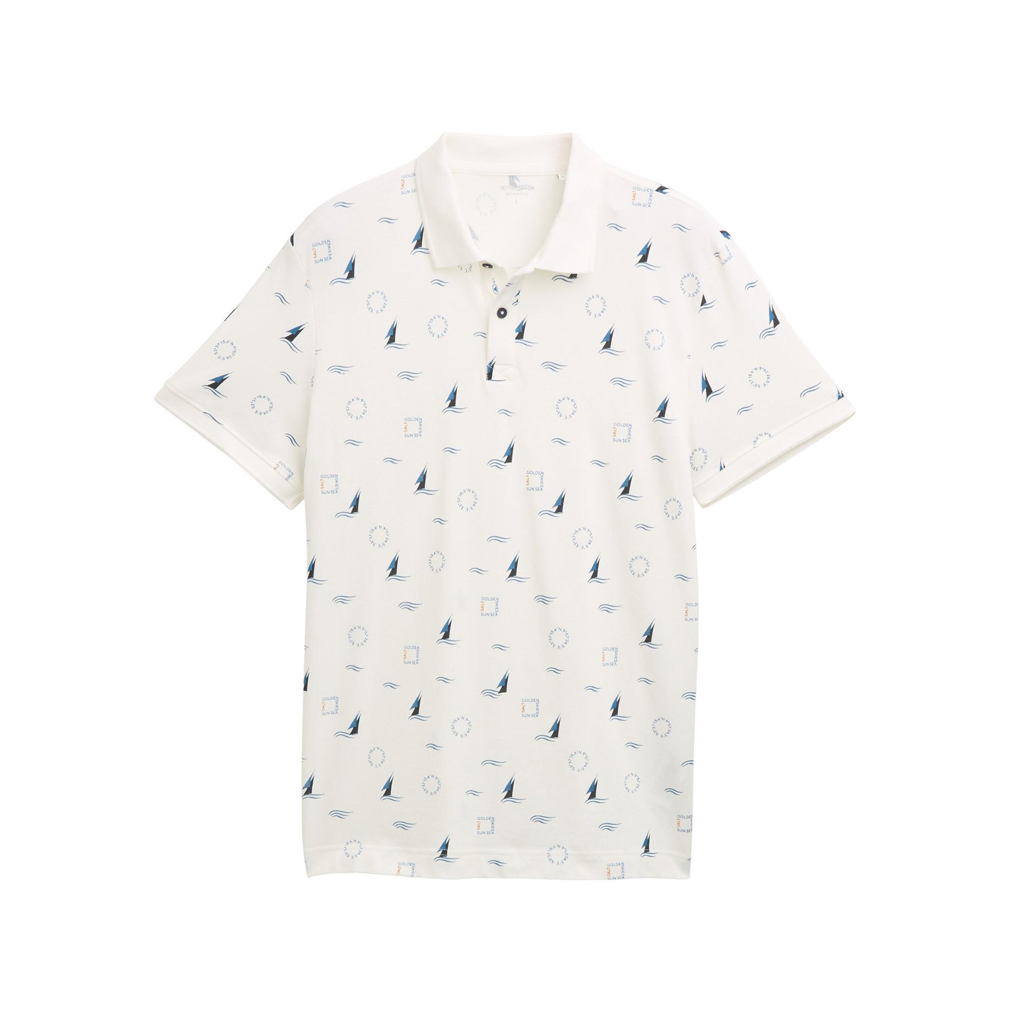 Dieses gemusterte Poloshirt ist aus Piqué-Stoff gefertigt und verfügt über eine halbe Knopfleiste sowie einen klassischen Polokragen. Der Regular Fit sorgt für eine bequeme Passform, während ein kleines Logo-Label dezent an der Seite sitzt. Es ist ideal für lässige Sommerlooks in Offwhite mit maritimem Design.