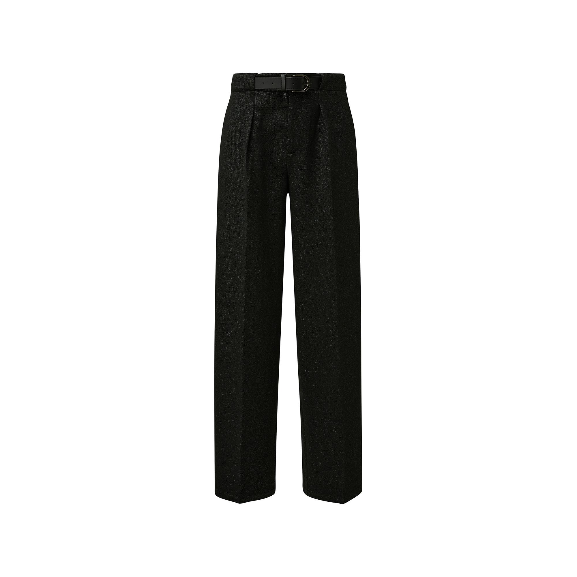 Die Bundfaltenhose kombiniert klassischen Chic mit einem Hauch Glamour dank des eingearbeiteten Glitzergarns. Der integrierte Gürtel und die Regular Fit-Passform sorgen für einen stilvollen und komfortablen Sitz. Sie ist ideal für elegante Herbst/Winter-Outfits mit modischem Statement.