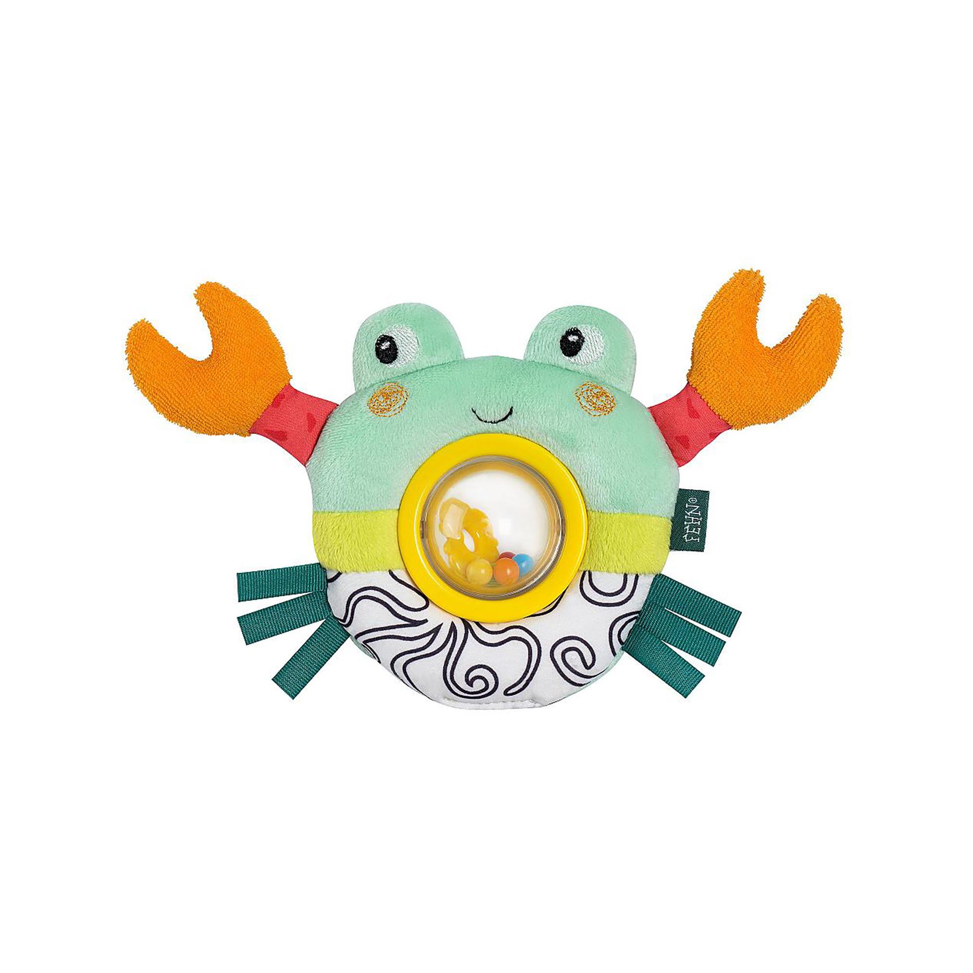 Die Drehballrassel Krabbe begeistert Babys ab 3 Monaten mit bunten Farben und einem drehbaren Ball, der zum Greifen und Geräusche erzeugen einlädt. Das motorikfördernde Spielzeug unterstützt spielerisch die Geschicklichkeit und Hand-Auge-Koordination.