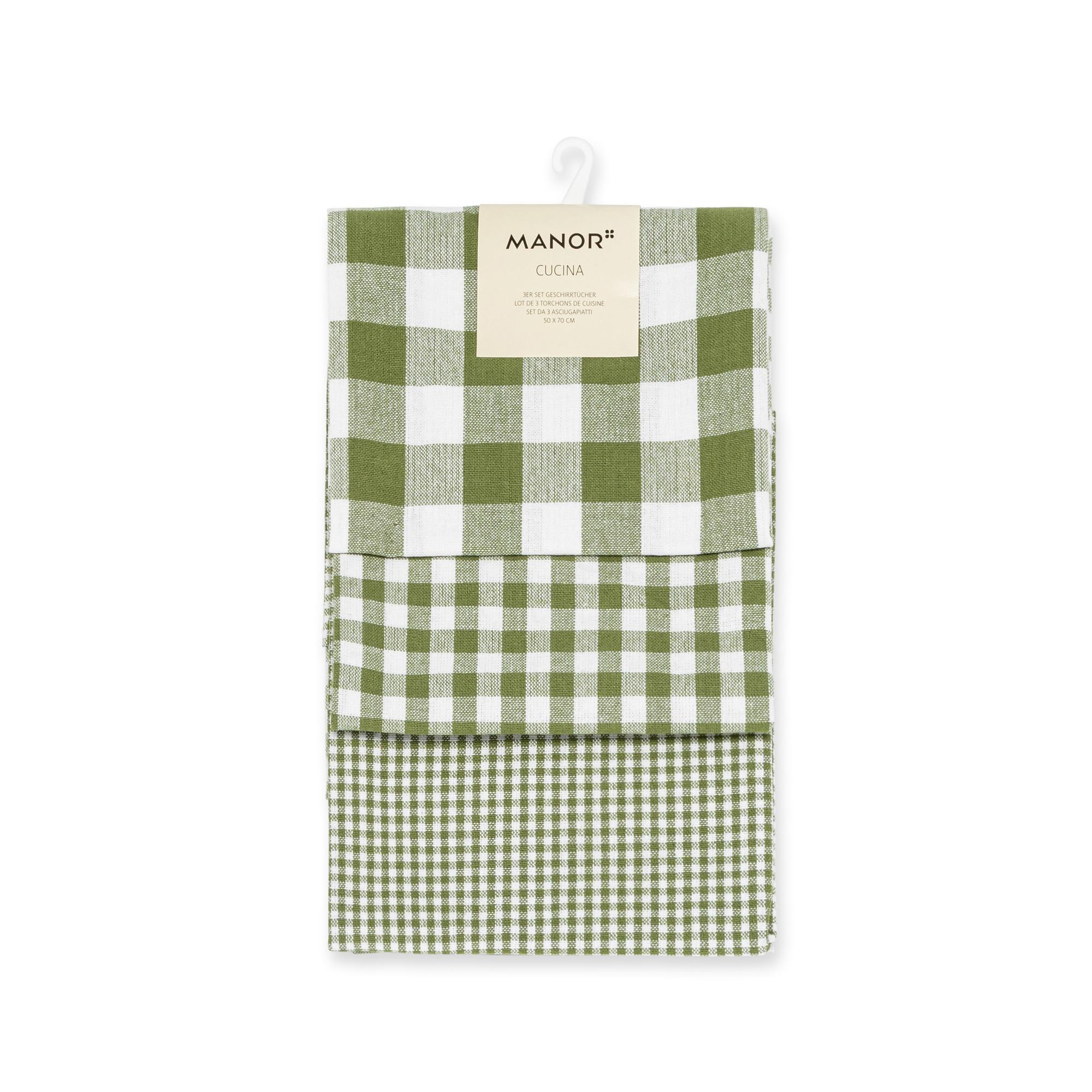 Dieses Set Küchentücher von Manor ist aus reiner Baumwolle hergestellt, mit Karo-Mustern für klassische Vibes in der Küche und am Grill.