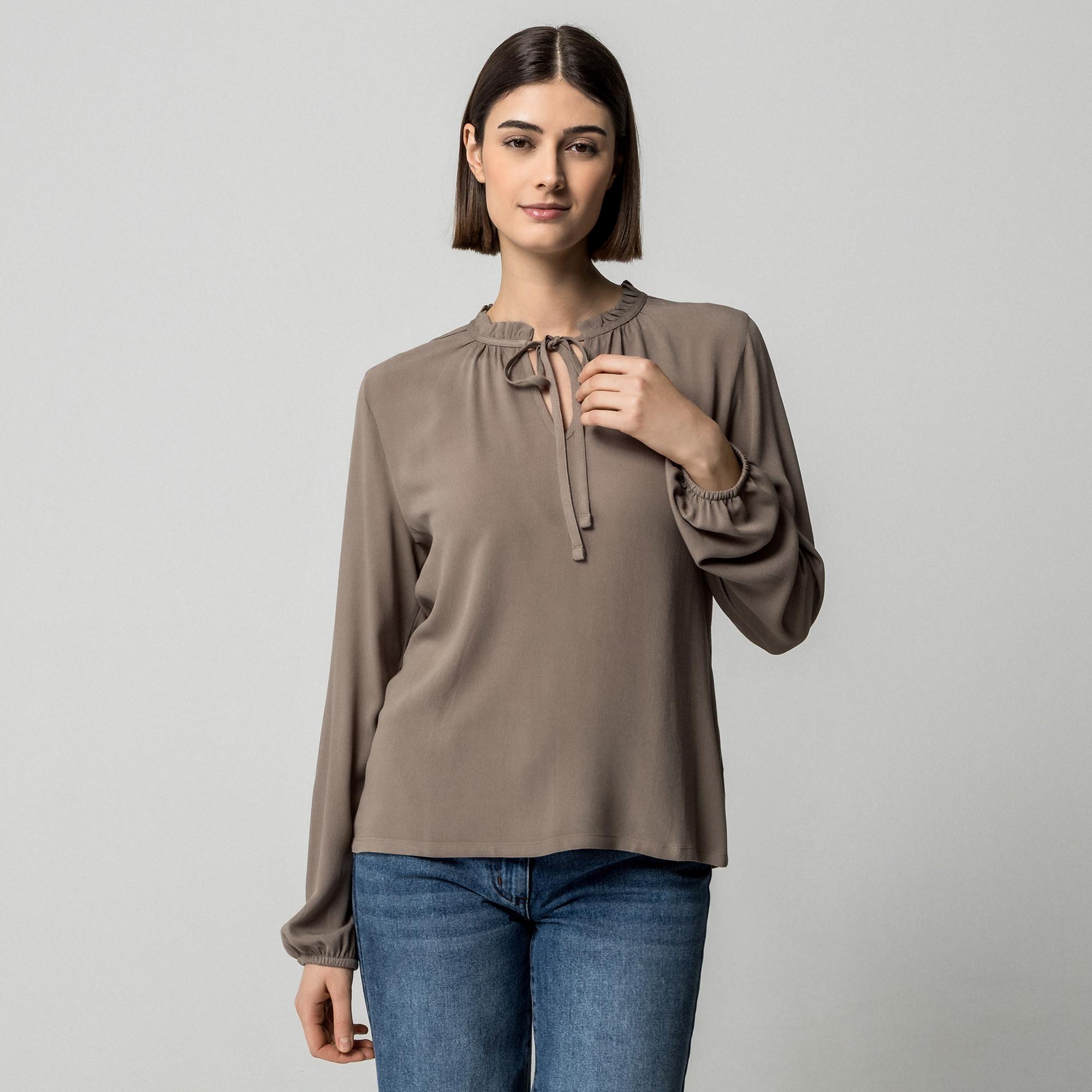 Manor Woman Langarmbluse mit Rüschen Stehkragen