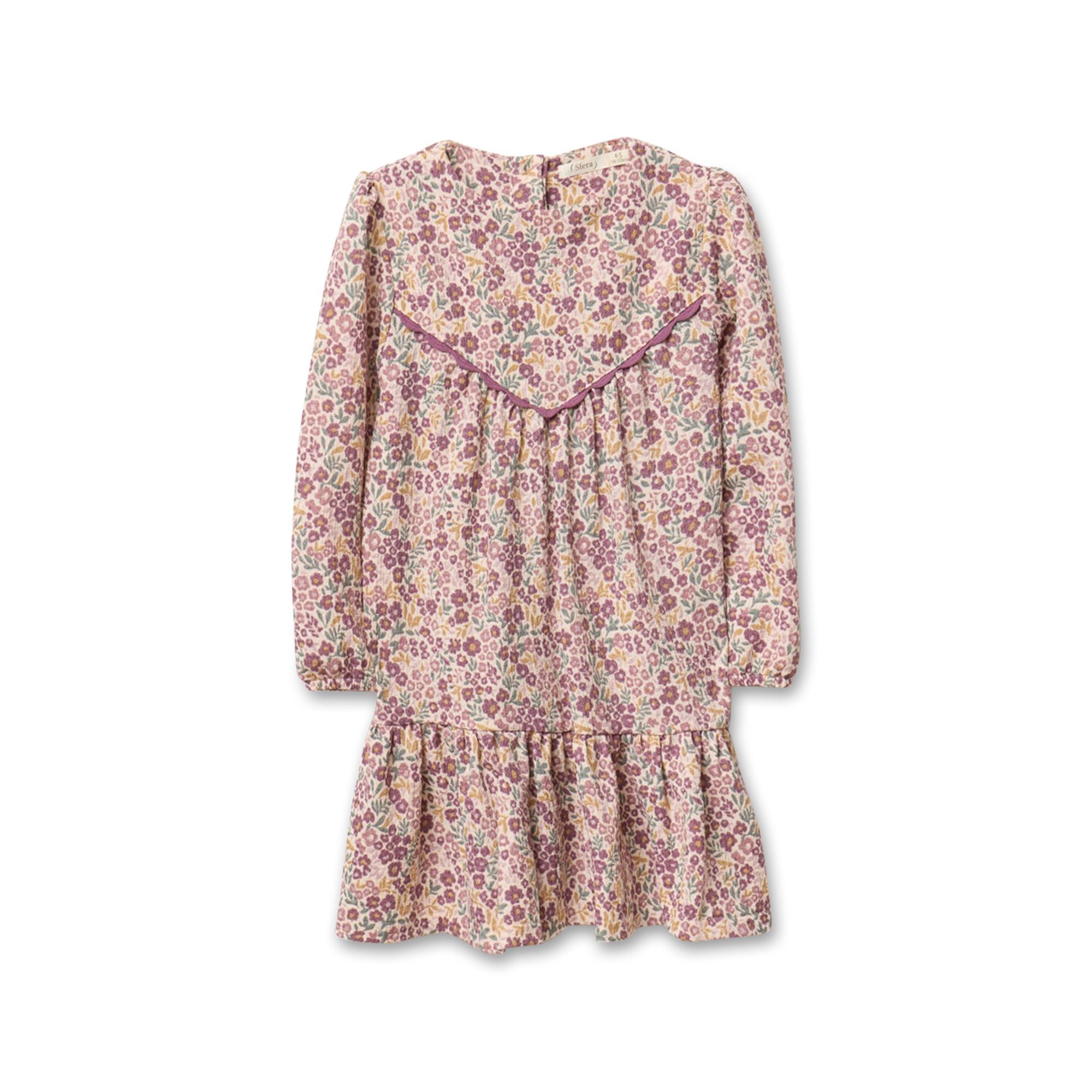 Das Vestido Estructura Volante ist ein strukturiertes Kleid mit Stehkragen, langen Ärmeln und verspieltem Volant am Saum. Der Knopfverschluss am Rücken rundet das elegante Design ab.