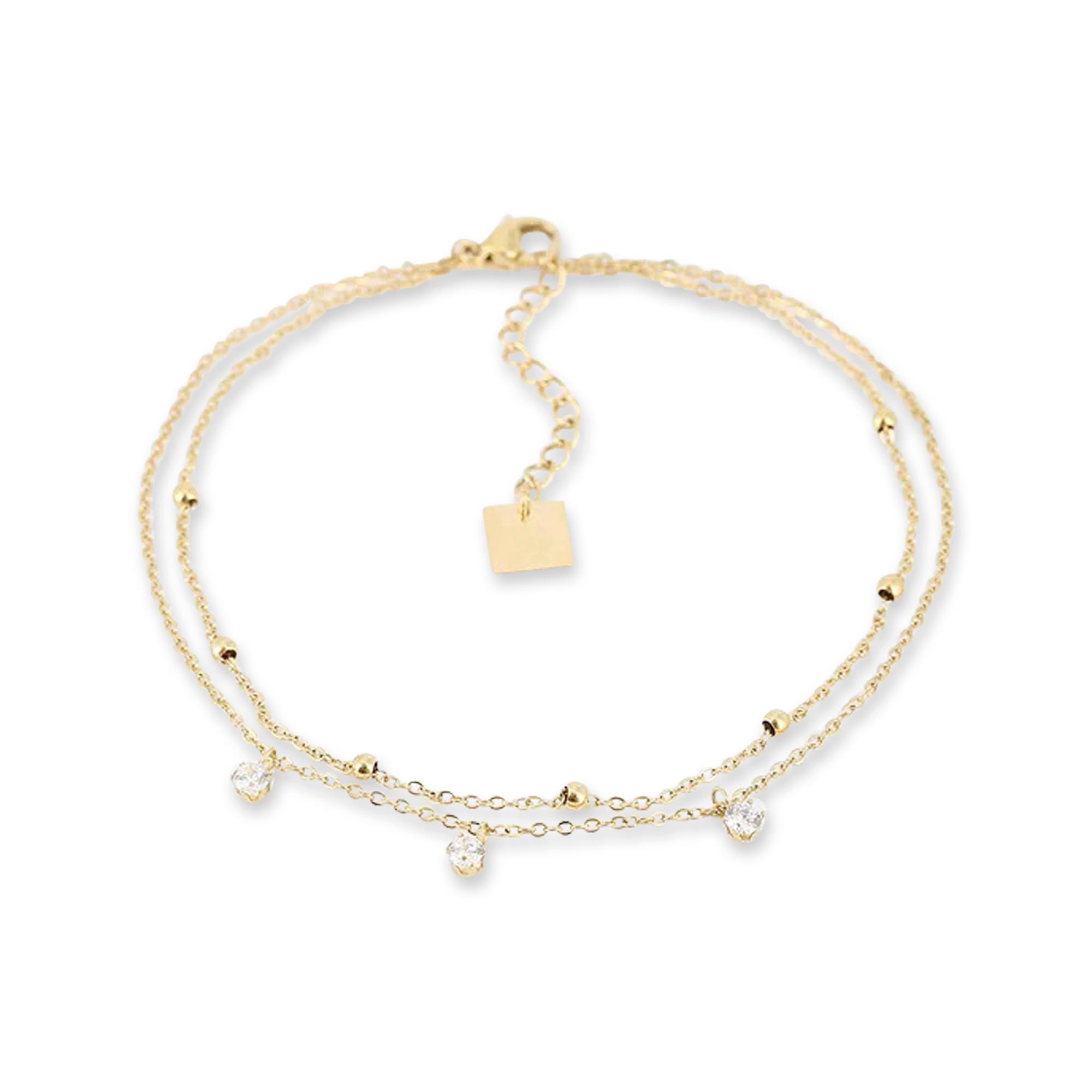 Diese Fusskette von Zag Bijoux aus hochwertigem Edelstahl und Ziersteinen vereint schlichte Eleganz und femininen Charme. Schliessen lässt sie sich stilgerecht per Karabiner und ist in der Länge anpassbar. Ob barfuss am Strand oder als zartes Detail im Alltag – diese Kette verleiht jedem Schritt eine leise, individuelle Note.