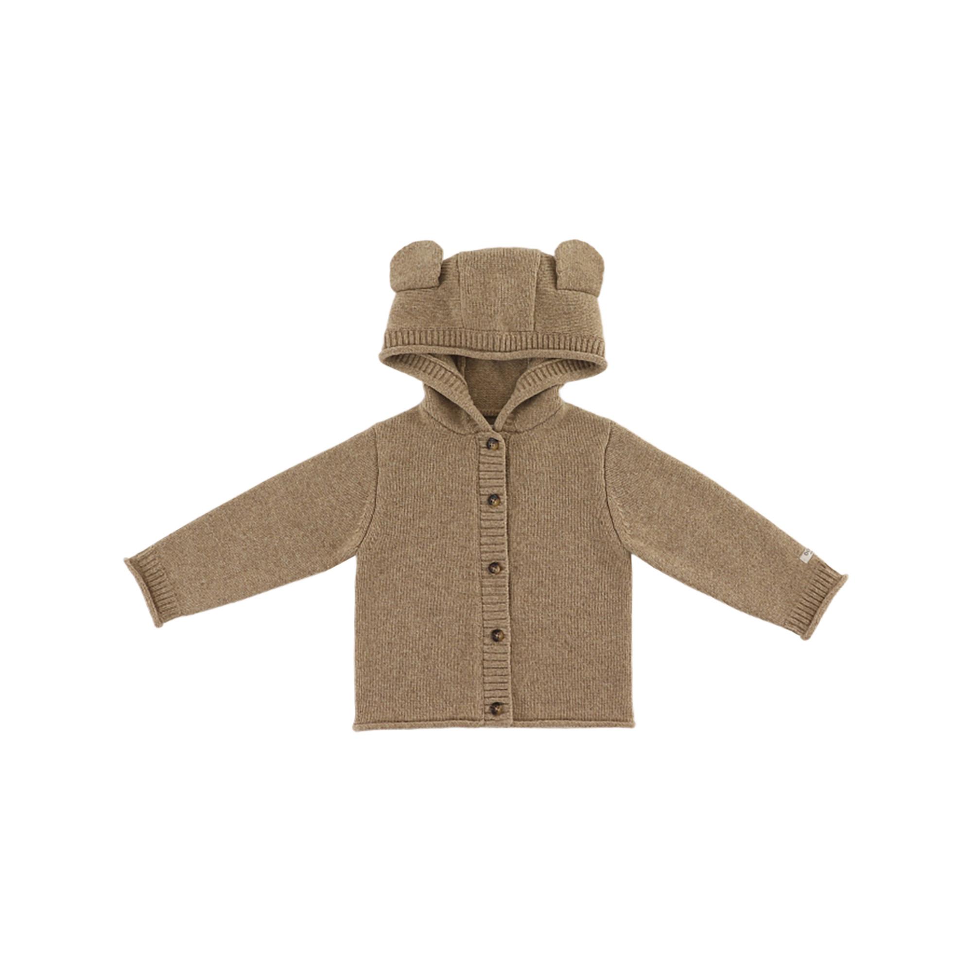 Die Donsje Strickjacke mit Kapuze ist ein bezauberndes Kleidungsstück für die Kleinsten. Die niedlichen Bärenohren auf der Kapuze und die Knopfleiste vorne verleihen ihr einen verspielten Look. Ideal für gemütliche Tage und kuschelige Outfits.