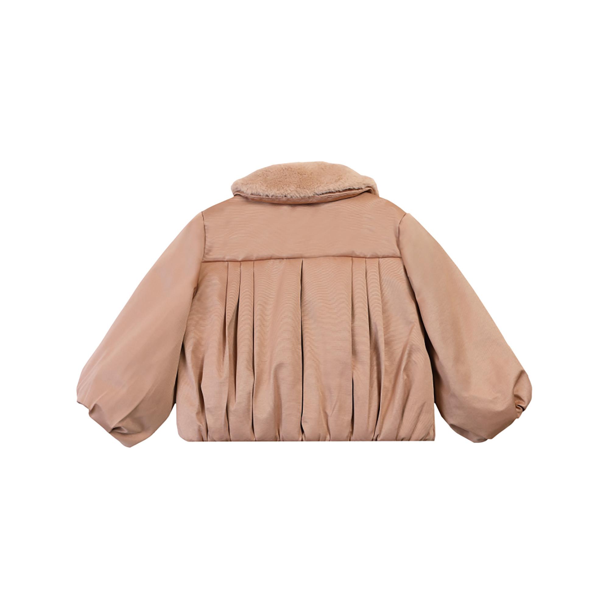 Diese stilvolle Jacke verfügt über einen abnehmbaren Fellkragen und einen verdeckten Reissverschluss. Sie hat zwei dekorative Taschen für einen charmanten Look und ist perfekt für kühlere Tage und besondere Outfits.