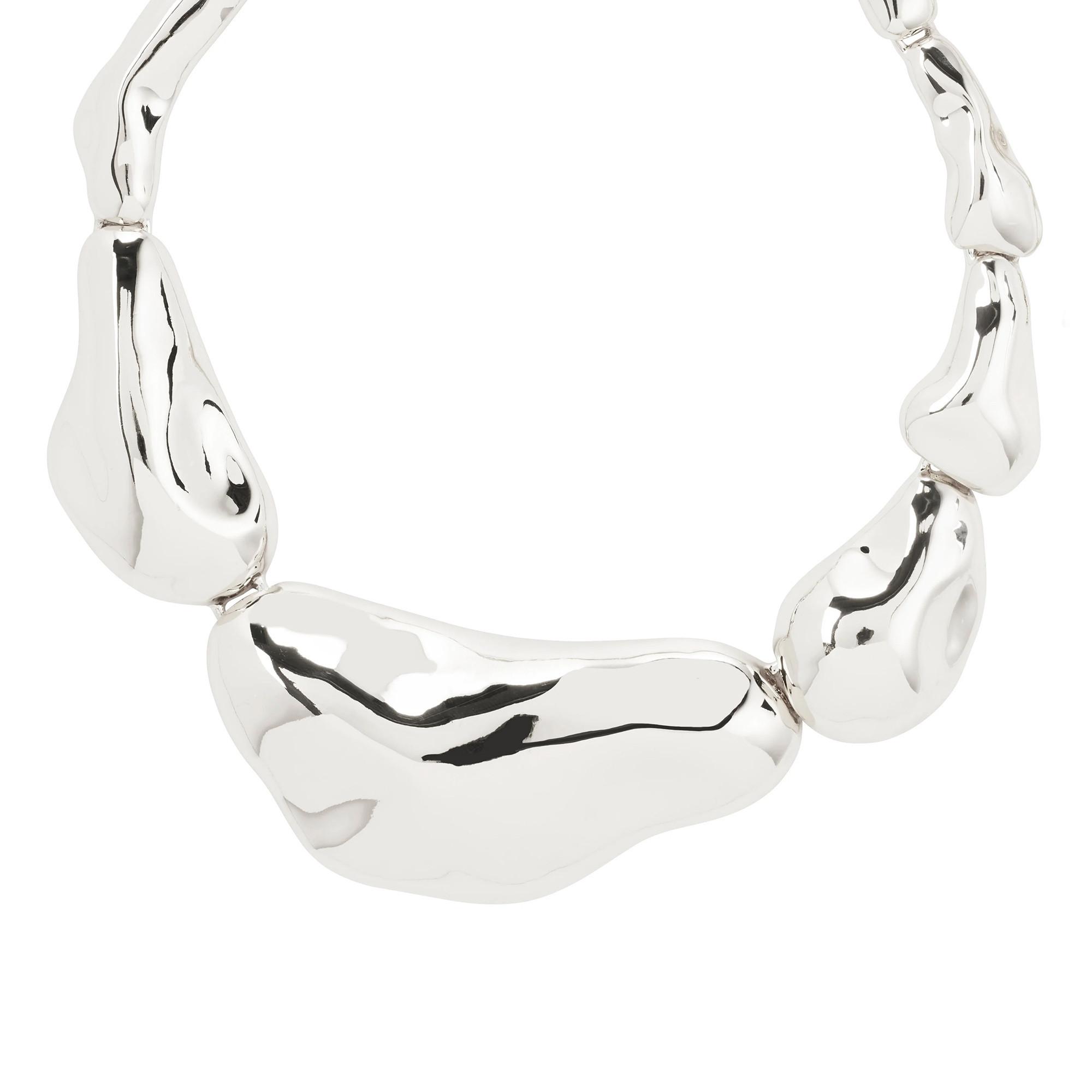Diese versilberte Halskette mit ausdrucksstarken Giga-Formen fängt die Magie des Strandes und des Meeres stilvoll ein. Mit ihrer variablen Länge ist sie ein markantes Statement-Piece für besondere Looks.