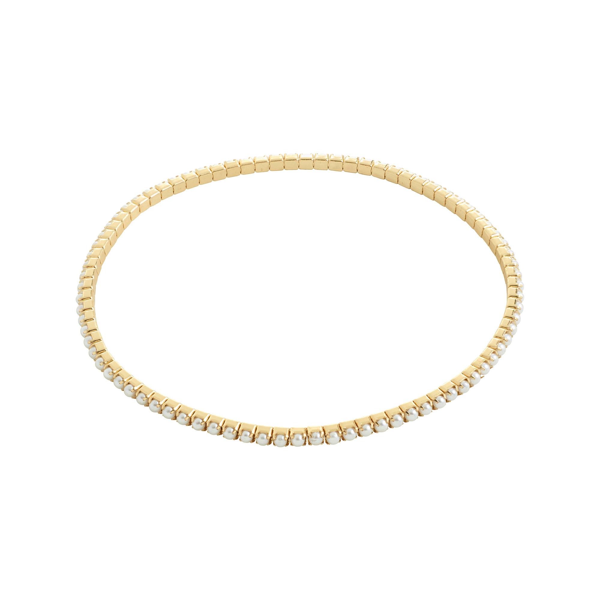 Das vergoldete ARASH Armband von Pilgrim kombiniert perlmuttfarbene Glasperlen mit einem schlanken Design, das sich ideal zum Stapeln eignet. Das elastische Lycra-Gummiband mit 17 cm Länge sorgt für bequemen Sitz und ermöglicht vielseitiges Mix & Match für einen persönlichen, glamourösen Look.