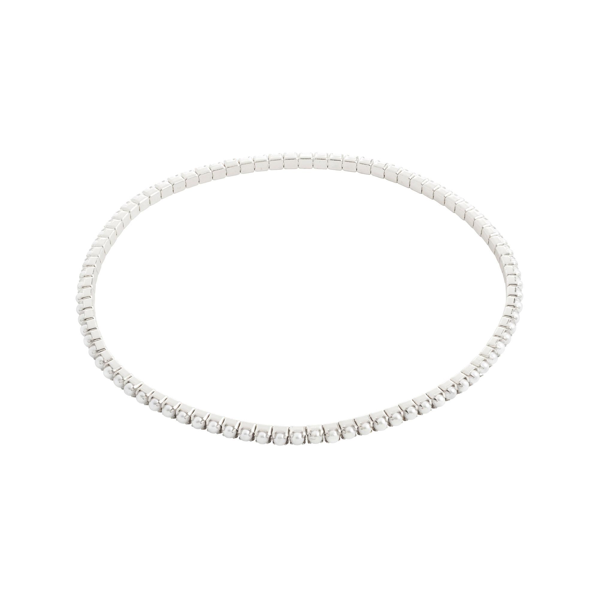 Das versilberte ARASH Armband von Pilgrim kombiniert perlmuttfarbene Glasperlen mit einem schlanken, stapelbaren Design für einen glamourösen Look. Das elastische Lycra-Gummiband mit 17 cm Länge sorgt für bequemen Sitz und ermöglicht vielseitiges Mix & Match für individuelle Styling-Kombinationen.