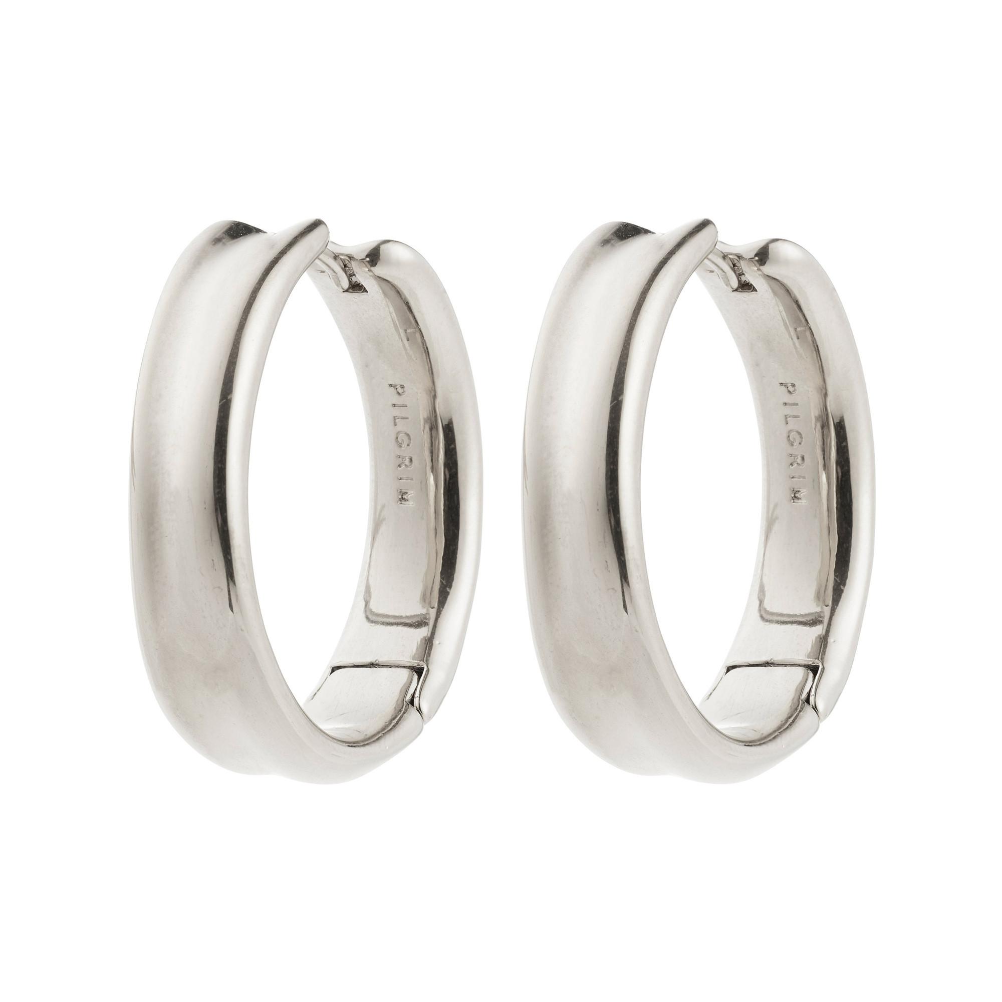 Die versilberten KAYDEN Hoops von Pilgrim vereinen skandinavische Coolness mit einem luxuriösen Glanz im breiten, minimalistischen Design. Dank praktischem Klickverschluss sind sie leicht zu stylen und passen perfekt zu Alltags- wie auch Festlooks.