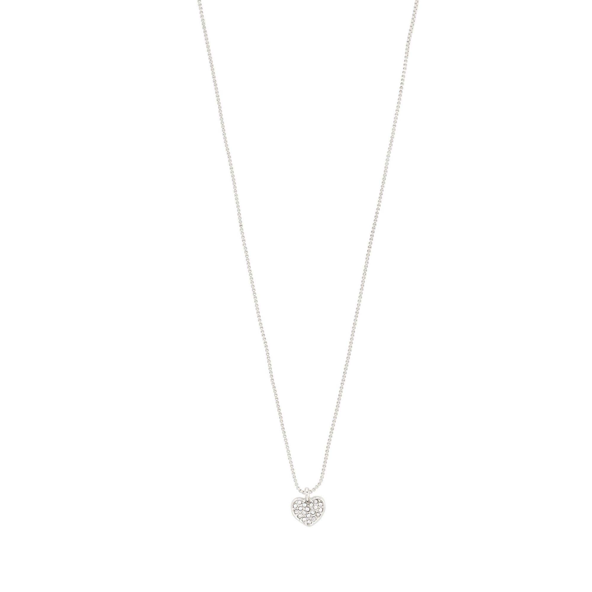 Die versilberte Halskette von Pilgrim mit Herzanhänger und funkelnden Preciosa-Kristallen verleiht jedem Look eine romantische und elegante Note. Mit 40 cm Länge plus 9 cm Verlängerung eignet sie sich perfekt solo oder im trendigen Layered-Look für Alltag und besondere Anlässe.