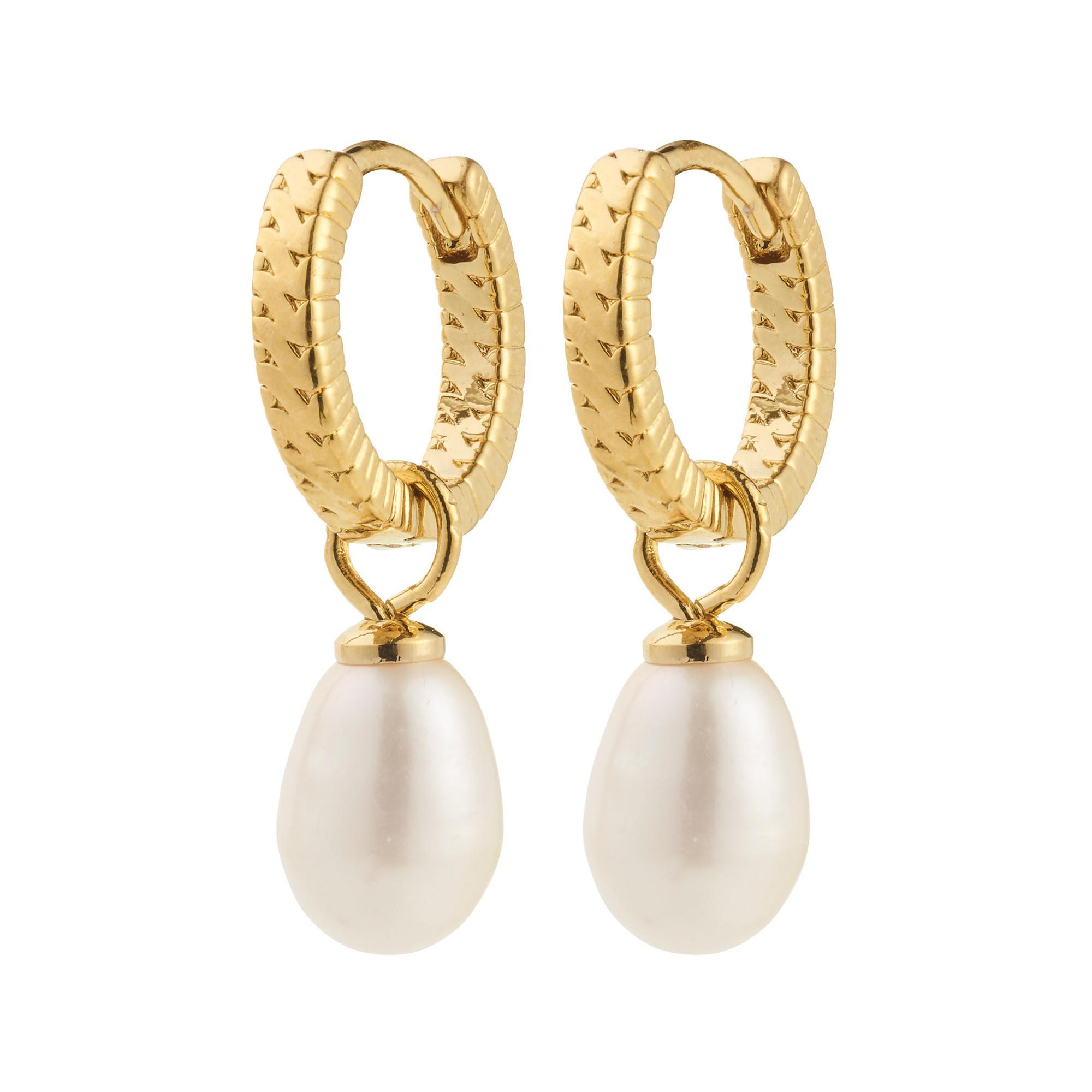 Die vergoldeten Hoops von Pilgrim überzeugen mit feiner Flechtstruktur und echten Süsswasserperlen, die jedem Look zeitlose Eleganz verleihen. Mit 23 mm Länge und praktischem Klickverschluss sind sie vielseitig tragbar – solo oder mit Anhänger für extra Glamour.