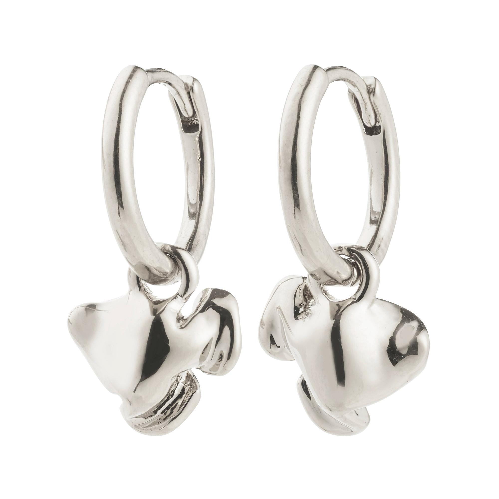 Die versilberten Huggie Hoops von Pilgrim sind mit abstrakten Blumenanhängern versehen und lassen sich je nach Stimmung als verspielte Boho-Ohrringe oder als schlichte Huggies stylen. Mit praktischem Klickverschluss sind sie mühelos anzulegen und kombinieren minimalistischen Chic mit einem Hauch von Luxus.