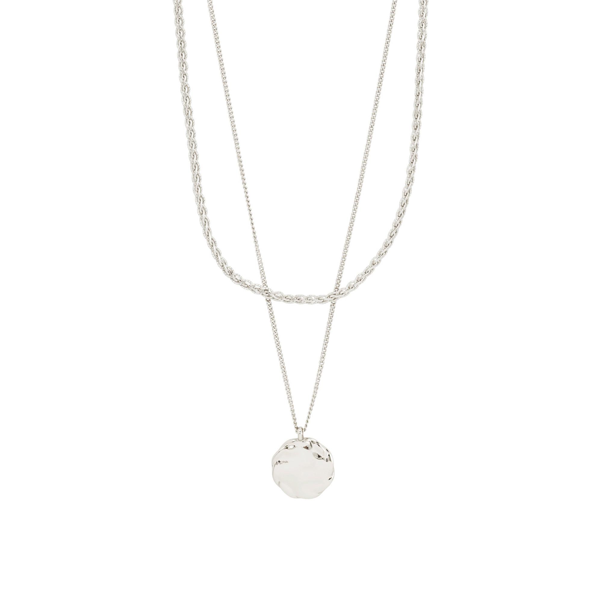 Das versilberte DECLAN Halsketten-Set von Pilgrim besteht aus zwei Ketten – einer geflochtenen Kette und einer Münzkette mit rustikalem Anhänger – und eignet sich perfekt für einen trendigen Layered-Look. Einzel- oder kombiniert getragen verleihen die Ketten jedem Outfit einen entspannten, stilvollen Vibe.