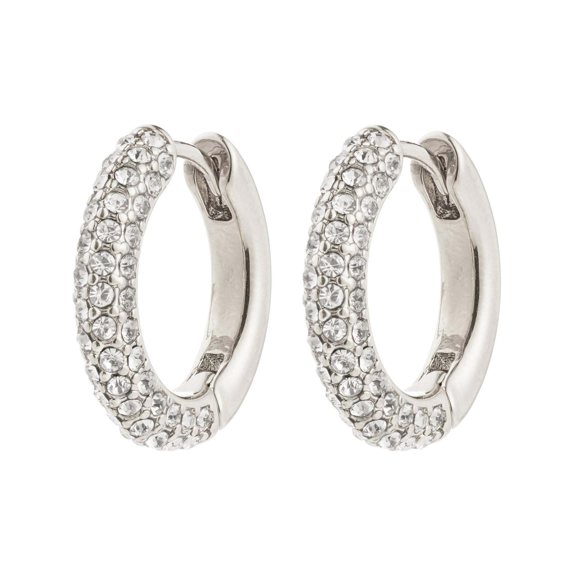 Glanz ist immer angesagt! Versilberte Hoops, besetzt mit funkelnden Preciosa-Kristallen, verleihen deinem Look einen Hauch von stillem Luxus. Perfekt für Day-to-Night-Styles – kombiniere sie zu deinen Basic-Outfits für ein elegantes Upgrade oder bring mit ihnen abends auf der Tanzfläche extra Glam und Sparkle ins Spiel. Dank praktischem Schnappverschluss sind sie super bequem und lassen sich mühelos stylen. Deine neuen Go-to-Hoops für wirklich jeden Anlass! Gefertigt aus robuster, wasserfester Qualität mit 97% recyceltem Material – Fashion mit gutem Gewissen.