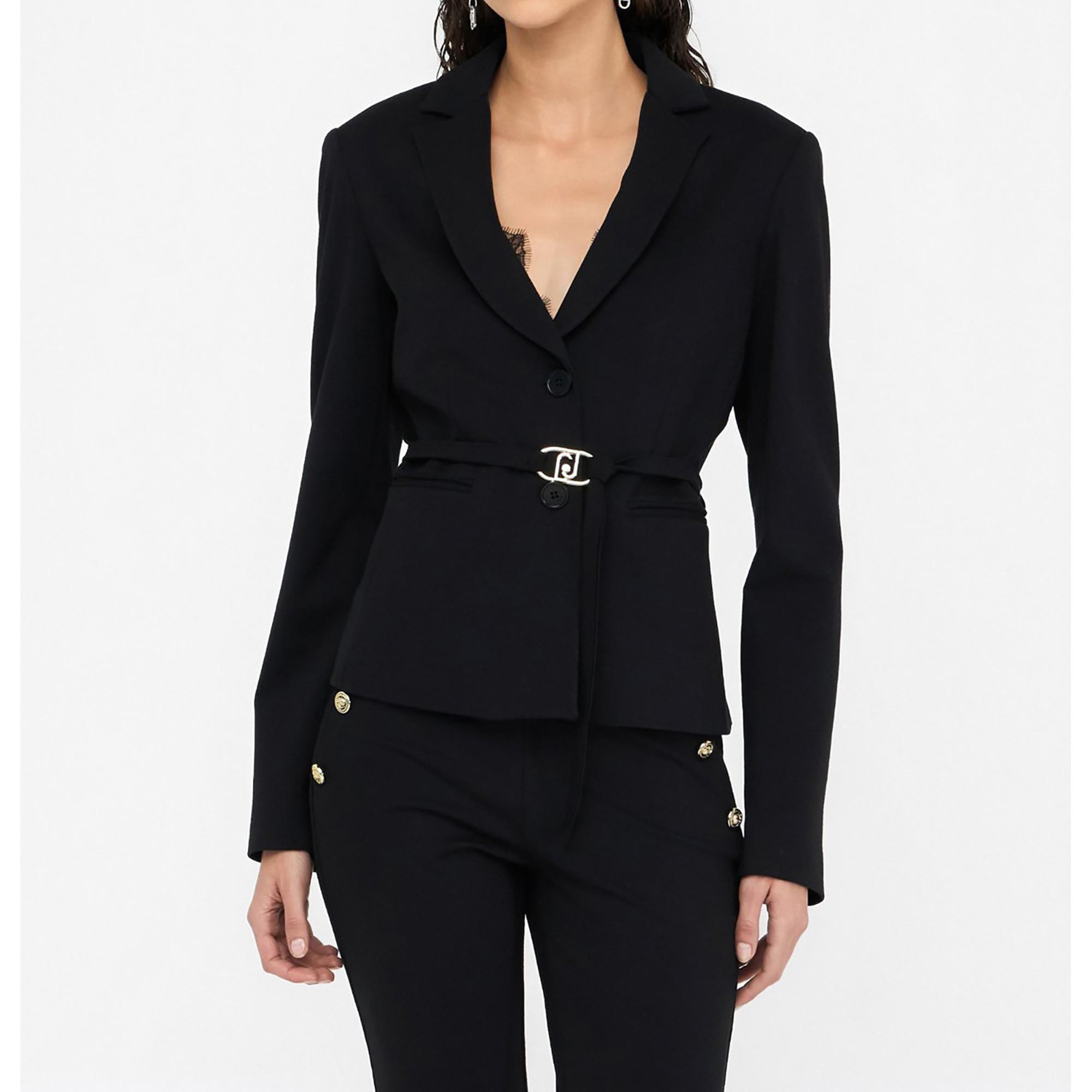 Der Blazer überzeugt mit einem taillierten Schnitt und einem eleganten Logo-Gürtel, der die Silhouette betont. Gefertigt aus einem hochwertigen Materialmix, eignet er sich perfekt für Business-Looks oder stilvolle Anlässe. Dezente Schulterpolster und ein klassisches Revers runden das Design ab.