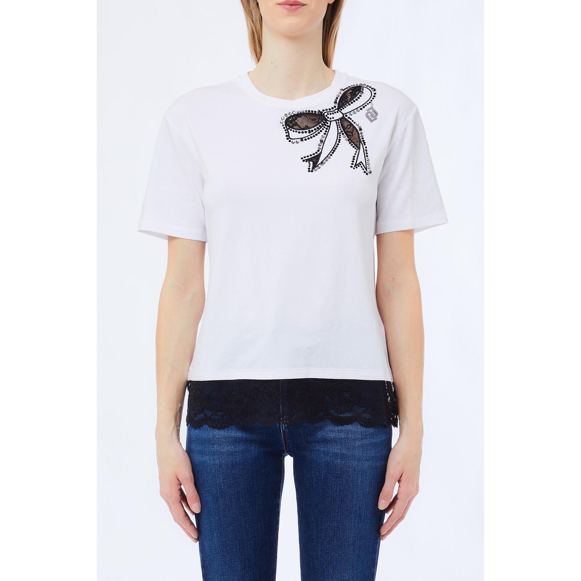 LIU JO, T-Shirt Spitzenbesatz Schleifenapplikation