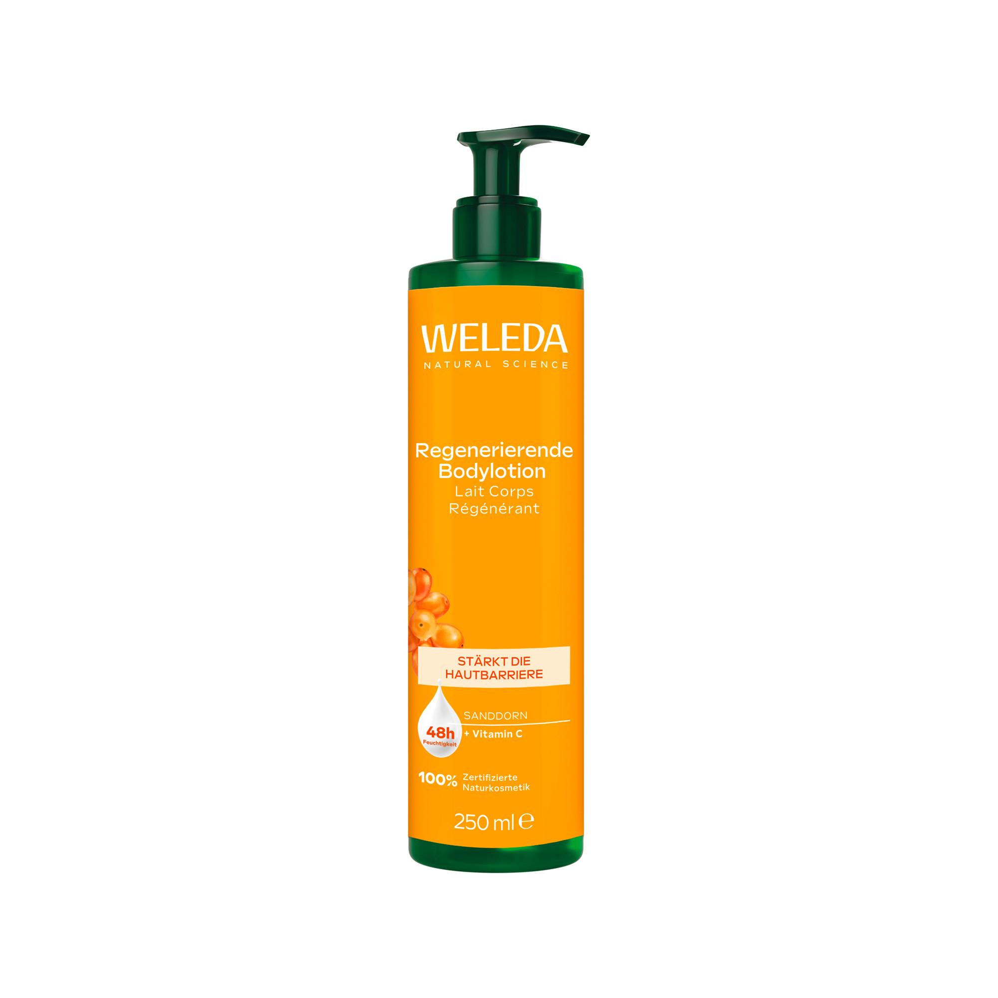 Die Regenerierende Bodylotion von Weleda beruhigt die Haut und schützt, regeneriert und stärkt die Hautbarriere.