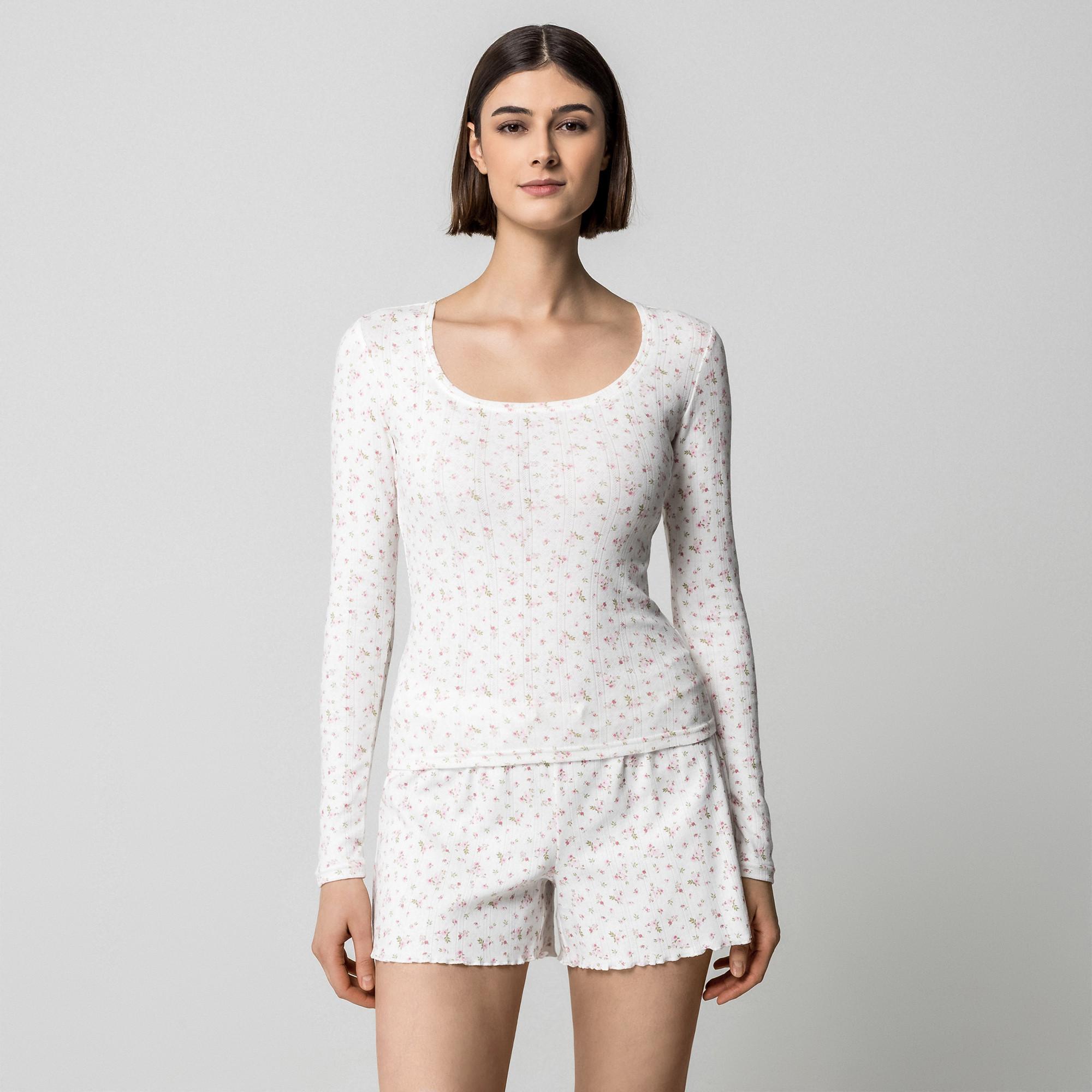 Dieses Pyjama-Oberteil ist aus einem bequemen Jersey-Stoff gefertigt und bietet ein weiches Gefühl für erholsame Nächte. Die Mischung aus Baumwolle und Elasthan sorgt sowohl für Atmungsaktivität als auch für eine leichte Dehnbarkeit für optimalen Komfort.