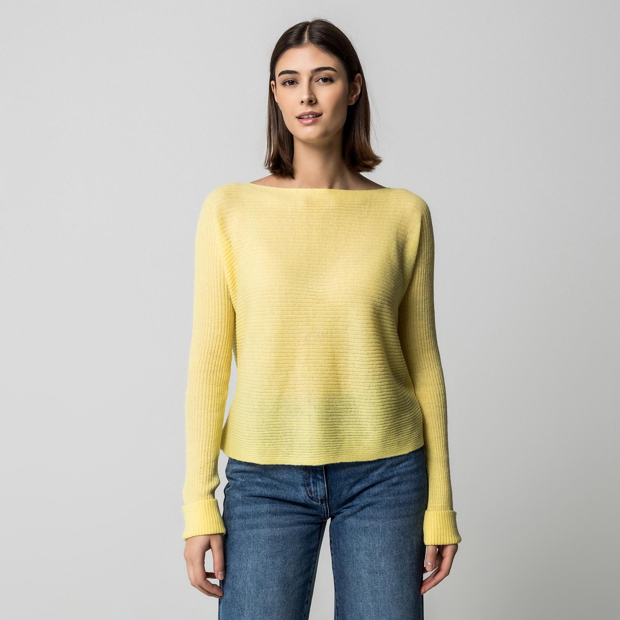 Dieser Rippstrick-Pullover kreiert mit quer gestricktem Design und der entspannten Relaxed-Passform einen femininen, urbanen Look. Der elegante U-Boot-Ausschnitt und schmal geschnittene Ärmel mit Umschlägen verleihen dem Modell einen lässigen, sportiven Look – ideal für stilvolle Alltagsmomente mit leichtem, frischem Flair.