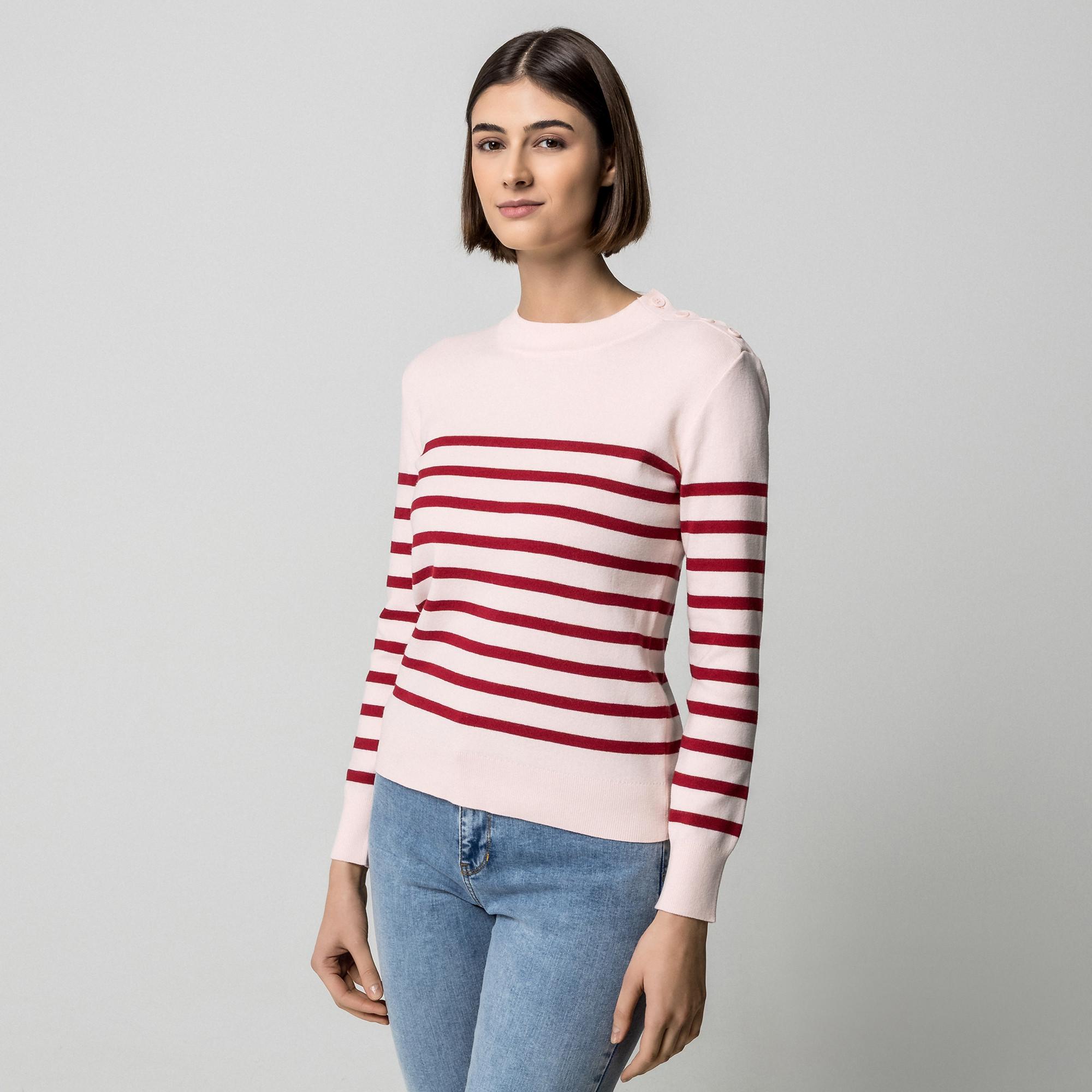 Manor Woman, Gestreifter Regular Fit Pullover mit Knopfleiste