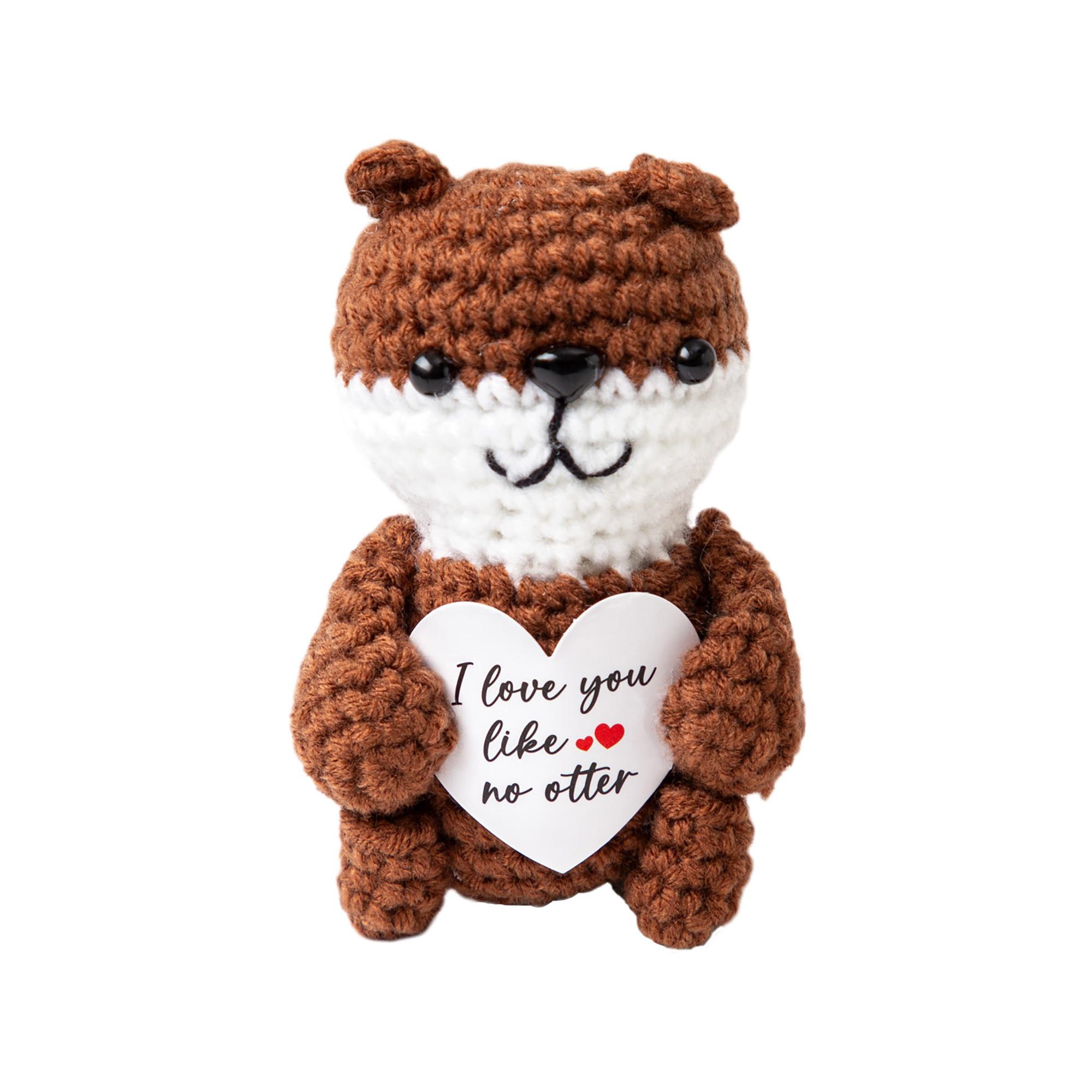 Der Positive Otter ist ein handgehäkelter Glücksbringer in warmem Braun mit dem liebevollen und humorvollen Spruch: