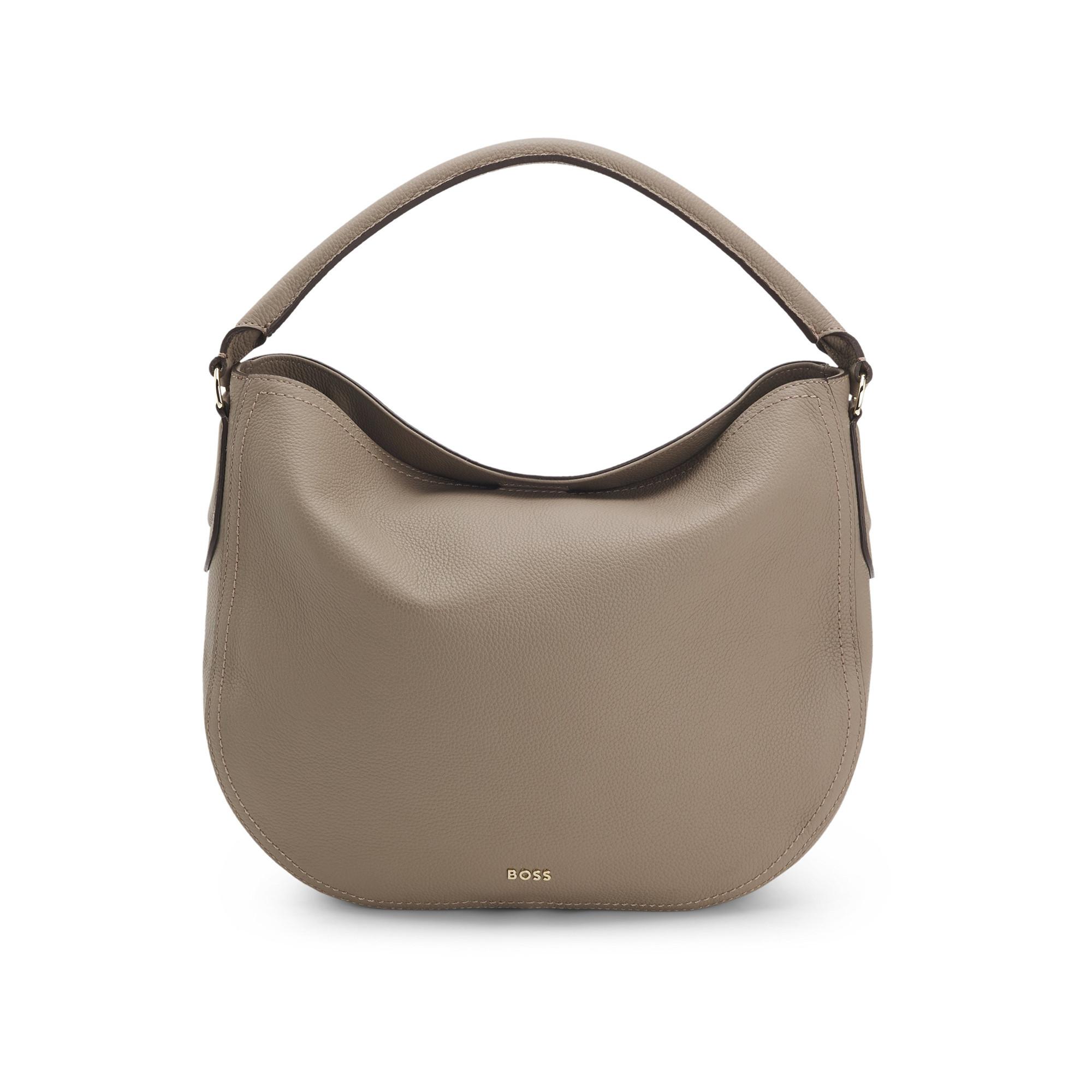 Diese Schultertasche ist aus hochwertigem, genarbtem Rindsleder gefertigt und verleiht Alltagslooks eine stilvolle Note. Goldfarbene Metalldetails und ein Magnetverschluss unterstreichen das elegante Design. Masse: 32 × 24,5 × 11 cm.