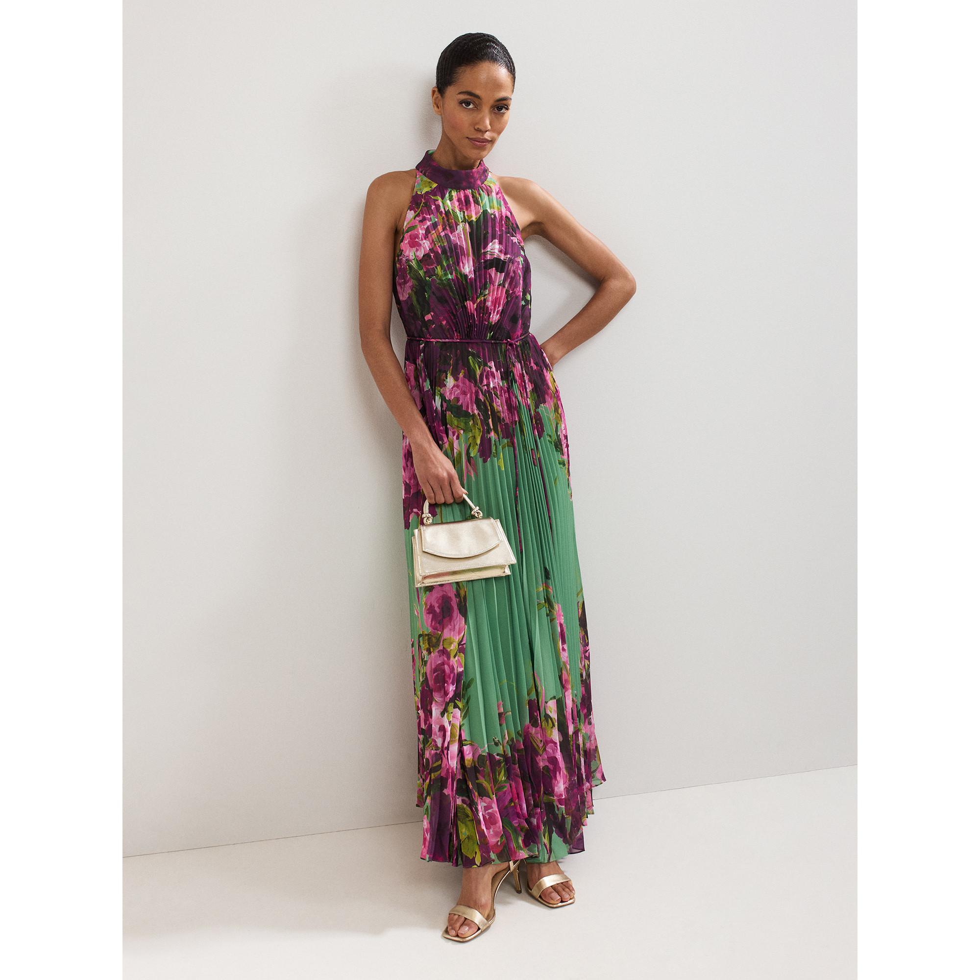 Phase Eight, Halterneck Plissiertes Blumen Maxi Kleid