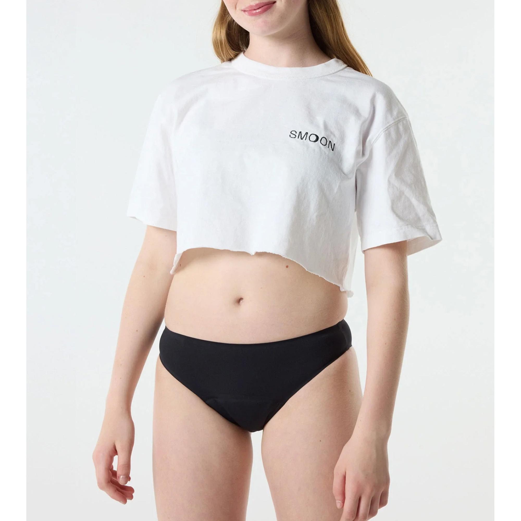 Der Phébé Menstruationsslip ist die saugstärkste Periodenunterwäsche von Smoon für Teenager – ideal bei starker Blutung. Er bietet bis zu 12 Stunden Schutz, Tag und Nacht, und absorbiert die Menge von etwa 4 normalen oder 2 grossen Tampons. Dank nahtloser Technologie bleibt er unsichtbar unter der Kleidung und sorgt für maximalen Komfort ohne Gerüche oder Feuchtigkeitsgefühl.