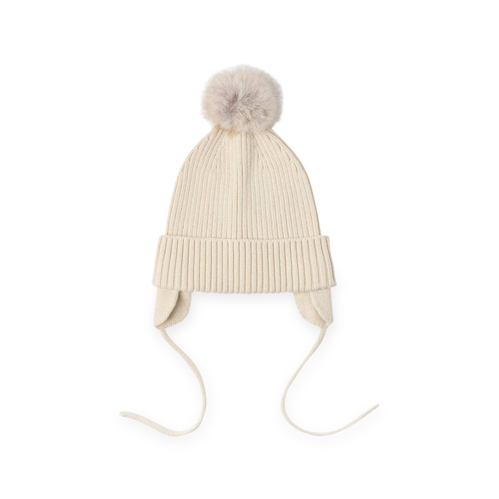 Diese gerippte Mütze aus dehnbarer Baumwolle bietet dank ihrer Ohrenklappen optimalen Schutz und erhält durch den flauschigen Kunstfellbommel einen charmanten Akzent. Mit den Bindebändern lässt sie sich sicher und bequem fixieren.