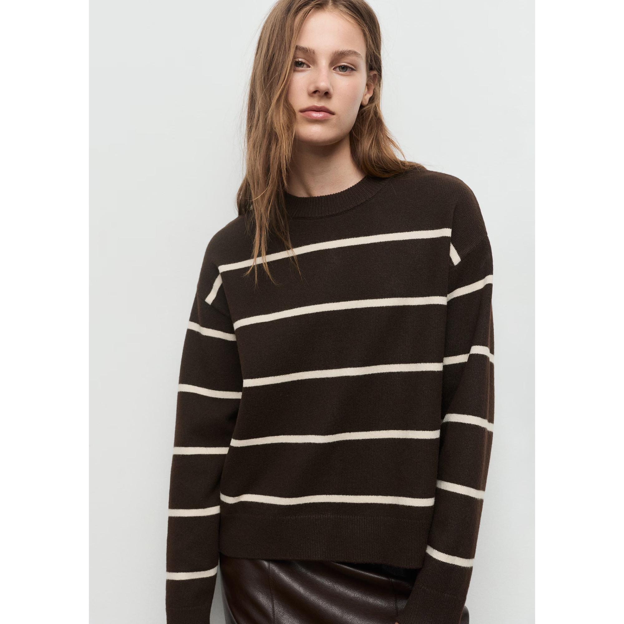Der gestreifte Strickpullover von Mango bringt mit seinem klassischen Muster frischen Wind in jede Garderobe. Der Rundhalsausschnitt und die gerippten Abschlüsse sorgen für eine bequeme Passform mit zeitlosem Charme. Er ist perfekt für entspannte Alltagslooks oder maritime Kombinationen.