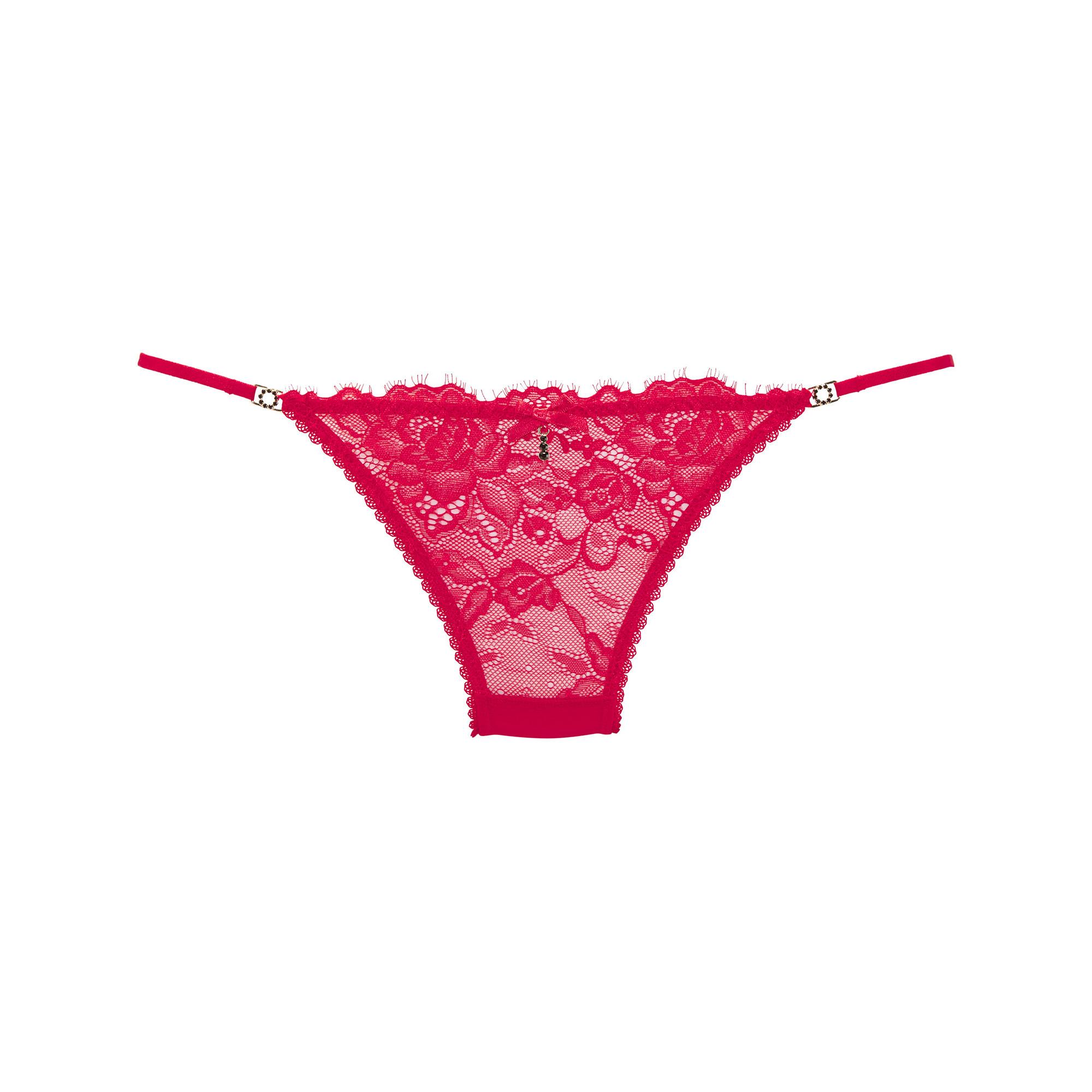 Dieser zarte Tanga verfügt über aufwendige Spitzendetails und bietet eine Mischung aus Eleganz und Komfort. Das Design wird durch eine kleine Schleife und dekorative Strassaccessoires auf der Vorderseite ergänzt, die einen charmanten Akzent setzen.