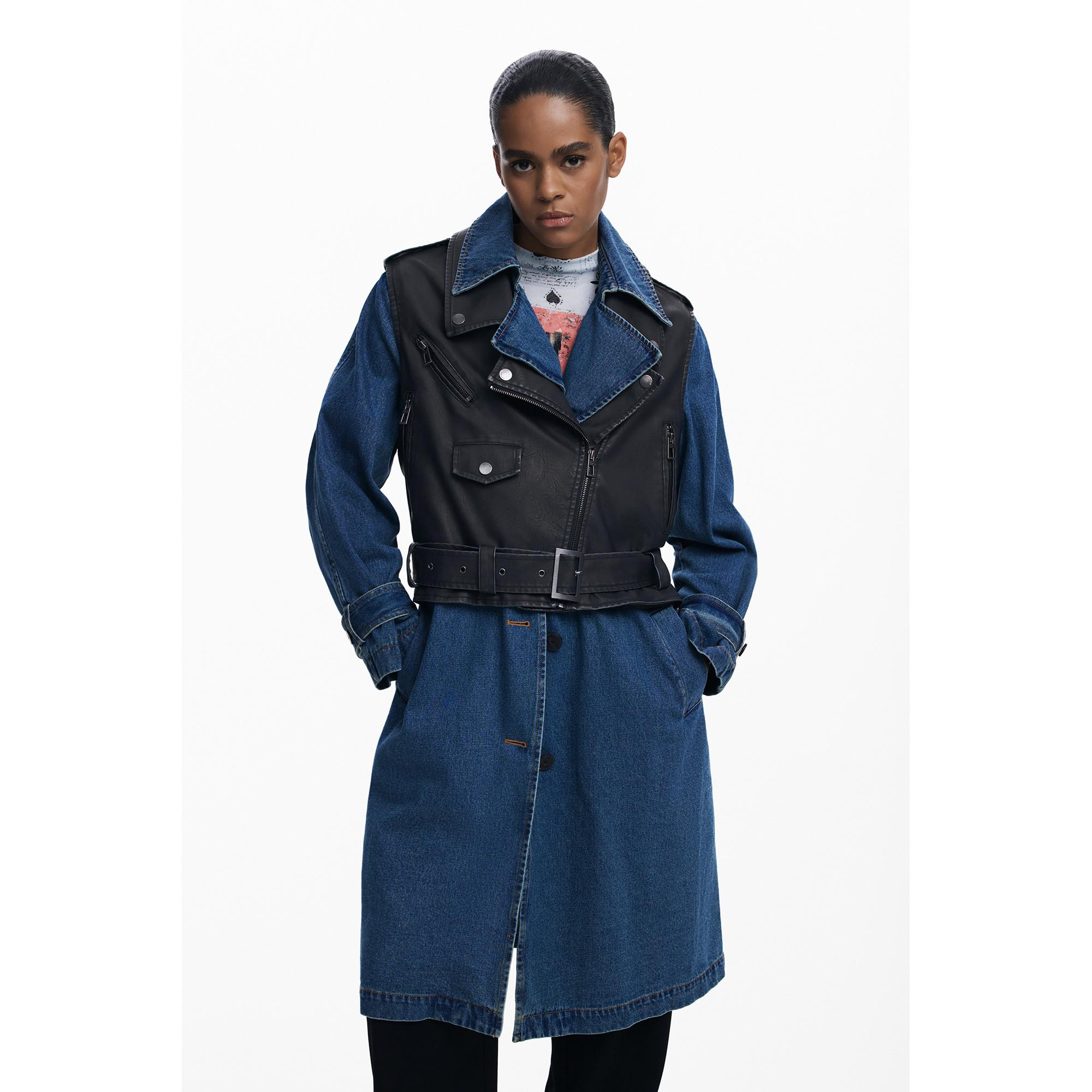 Desigual, Denim Trenchcoat mit Kunstleder Weste