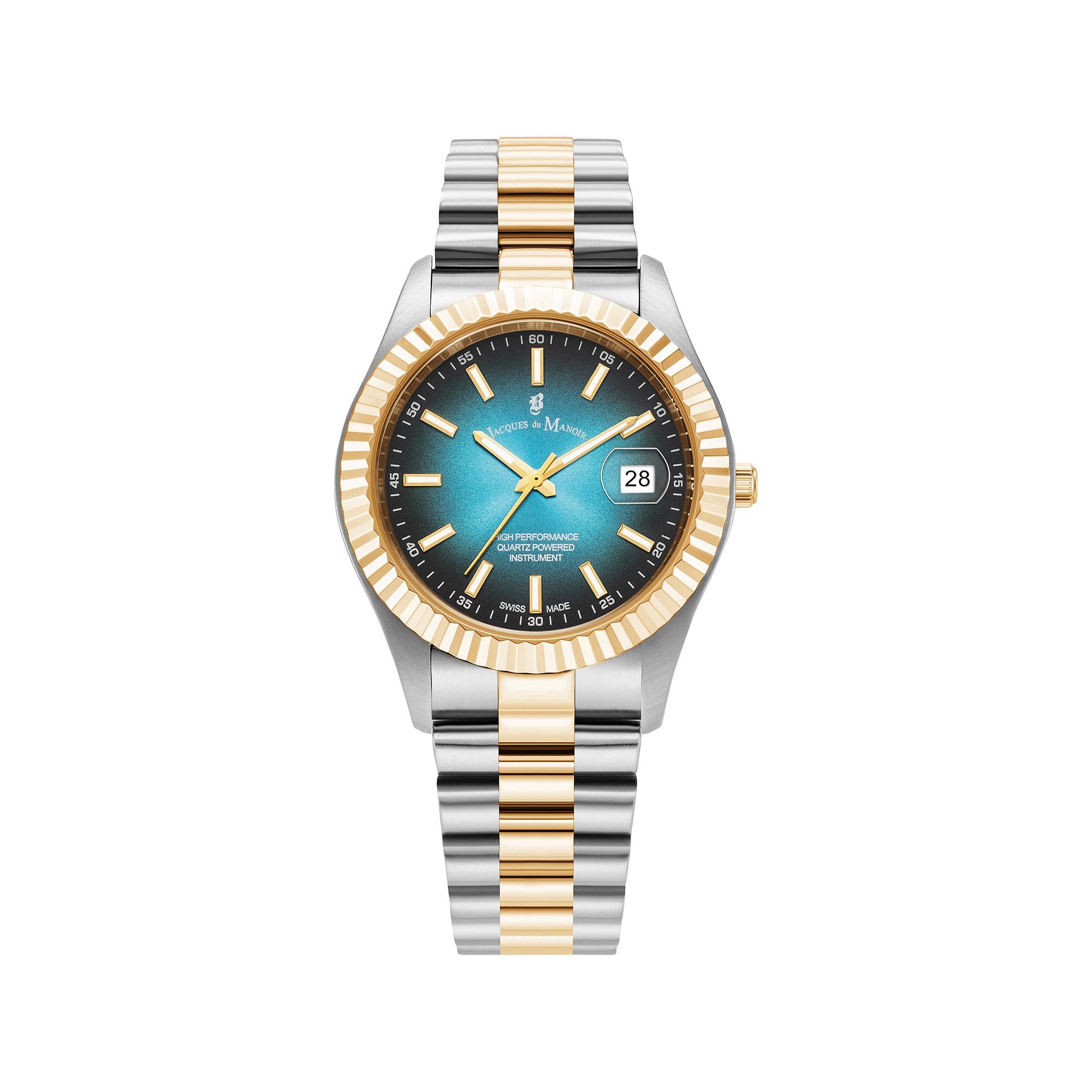 Die Jacques Du Manoir Uhr besticht durch ihr 40-mm-Edelstahlgehäuse, eine klassische 3-Zeiger-Anzeige mit Datum und ein widerstandsfähiges Mineralglas. Das elegante Edelstahlarmband verleiht ihr einen zeitlosen Look und dank 5 ATM Wasserdichtigkeit eignet sie sich perfekt für den Alltag.