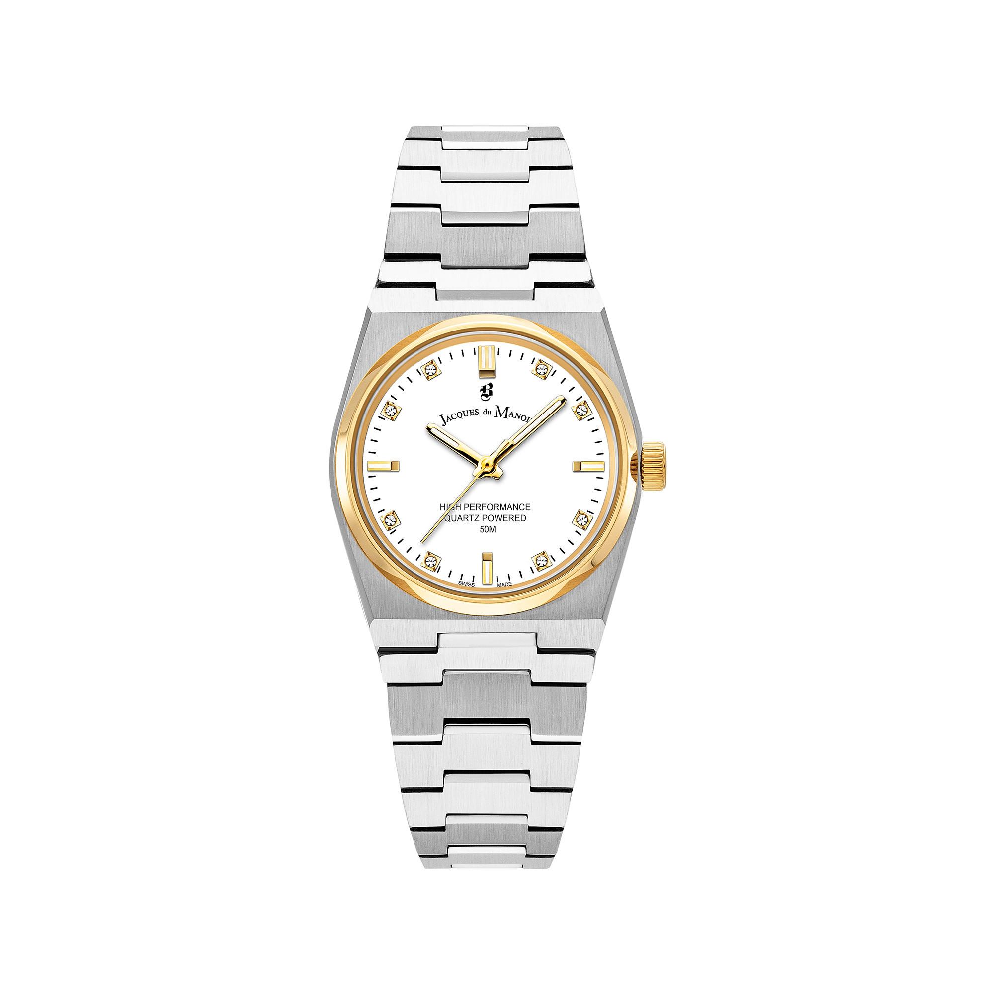 Die Jacques Du Manoir Uhr kombiniert ein 31-mm-Edelstahlgehäuse mit einer klassischen 3-Zeiger-Anzeige und robustem Mineralglas. Das Edelstahlarmband rundet das zeitlose Design ab und dank 5 ATM Wasserdichtigkeit ist sie bestens für den Alltag geeignet.